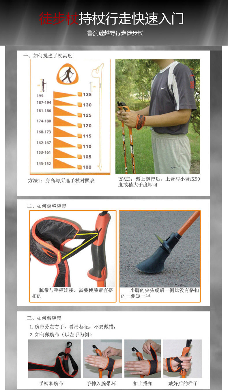 로빈슨 크로스 컨트리 워킹 스틱 등산 스틱 단일 섹션 초경량 탄소 섬유 하이킹 스틱 쌍스토어 가기