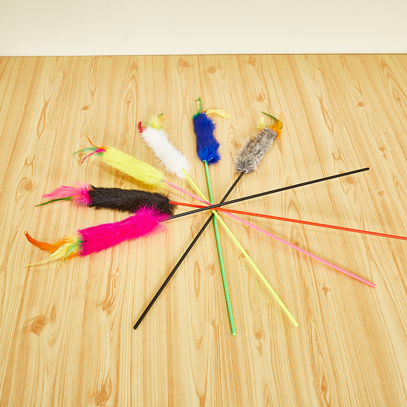 다채로운 진짜 머리 재미있는 고양이 스틱 고양이 장난감 멀티 컬러 토끼 모피 긴 고양이 용품 고양이 대화 형 애완 동물 용품스토어 가기
