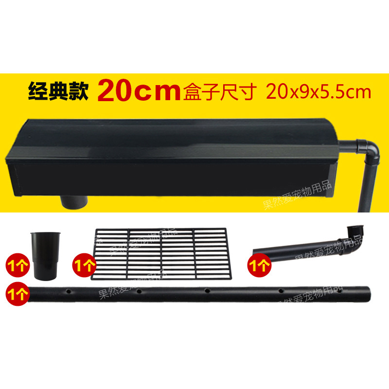 经典款宽度9cm,高度5.5cm,加高加宽款宽度11cm,高度7cm长度可以根据鱼缸实际尺寸选择合适的!