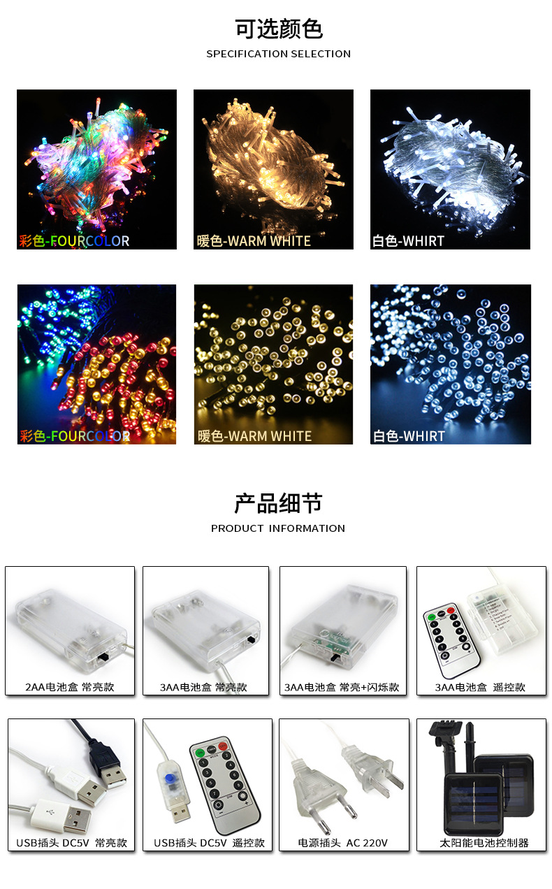 • 스트링 조명 USB 적외선 원격 제어 10.8m 조명