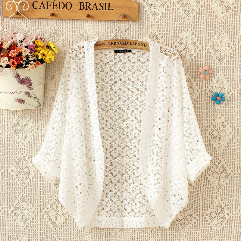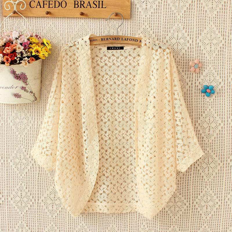 여름 크로 셰 뜨개질 중공 얇은 카디건 외부 에어컨 셔츠 박쥐 중공 니트 셔츠 반팔 여성용 중간 길이 그물 셔츠스토어 가기