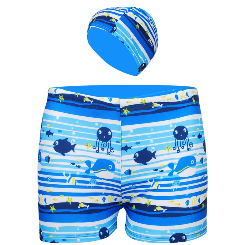 어린이 복서 만화 수영 트렁크 수영 모자 아기 슈퍼맨 복서 반바지 아기 소년 플러스 사이즈 어린이 수영복 세트