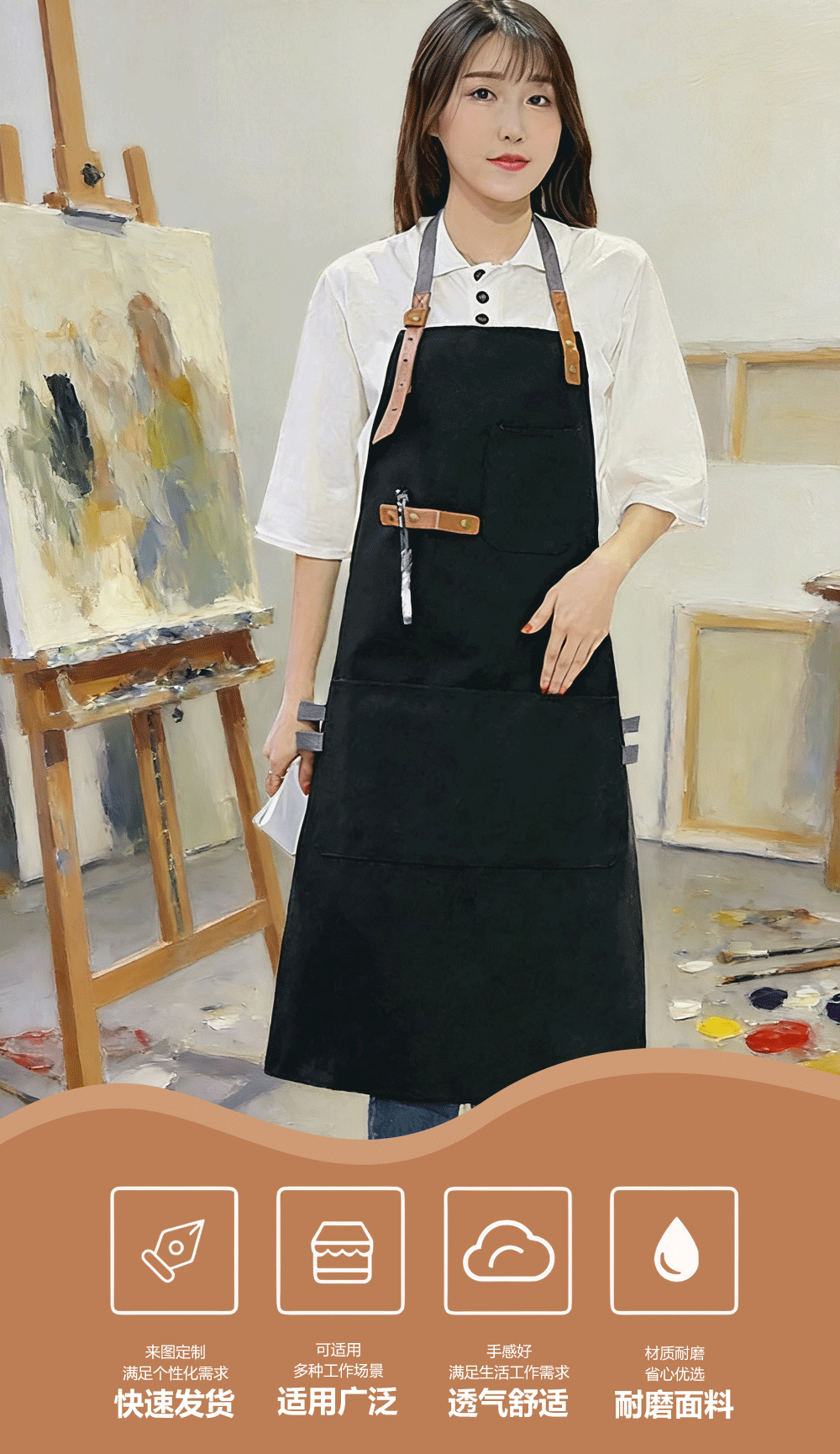 크로스보더 캔버스 앞치마, 커피숍 작업복, 커플 페인팅, 밀크티, 서점, 한국 스타일 패션, 새로운 스타일 앞치마, 맞춤 제작스토어 가기