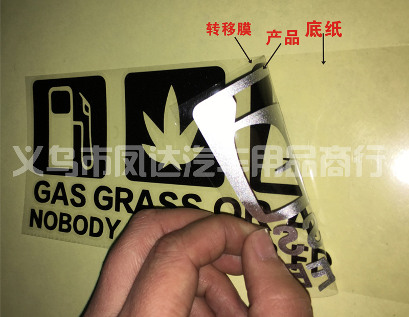 材质:反光材质,三层结构(上面保护膜,中间产品,下面透明膜)