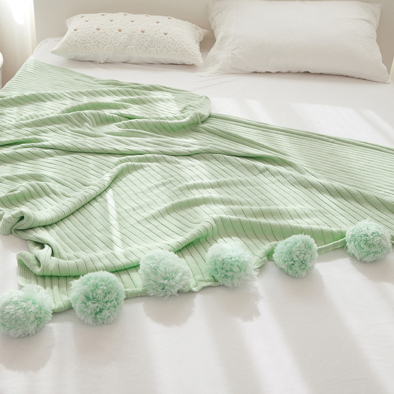 【描述】:少女心爆棚的软萌毛球毯,全棉材质、针织工艺,四季皆宜。