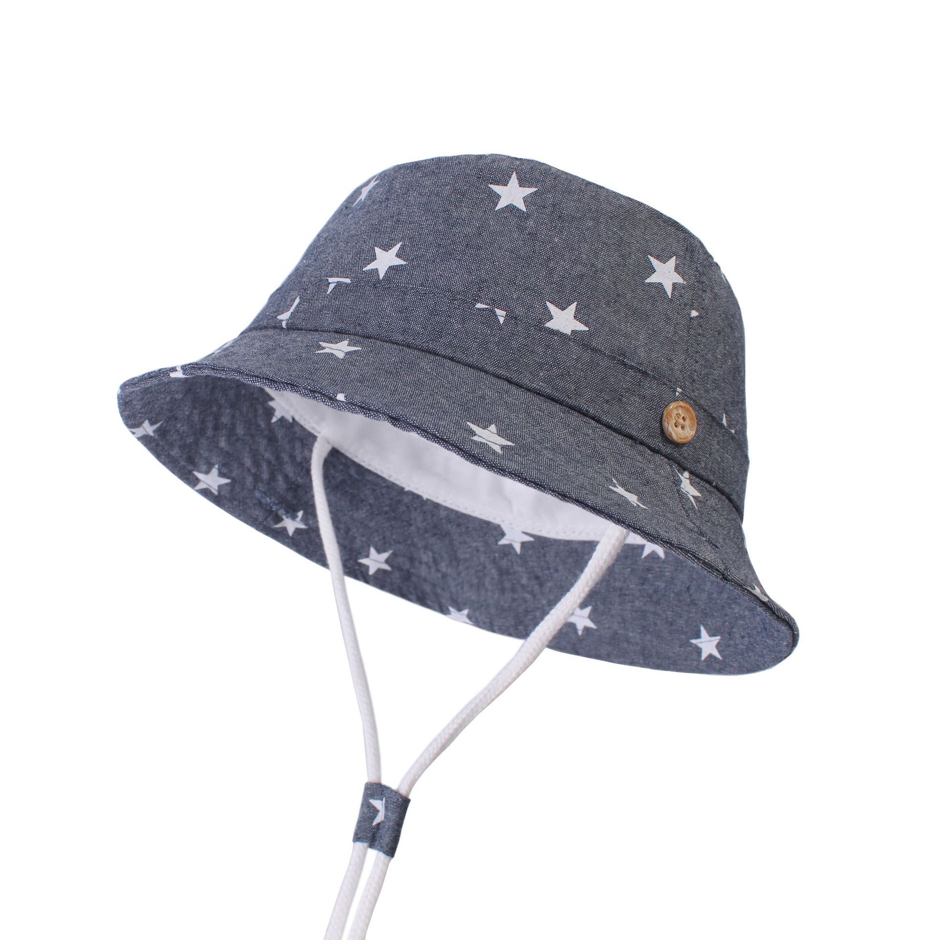 2017 봄과 여름 새로운 어린이 모자 인쇄 다섯개 별 데님 어부 모자 차양 선 스크린 분지 모자 도매스토어 가기