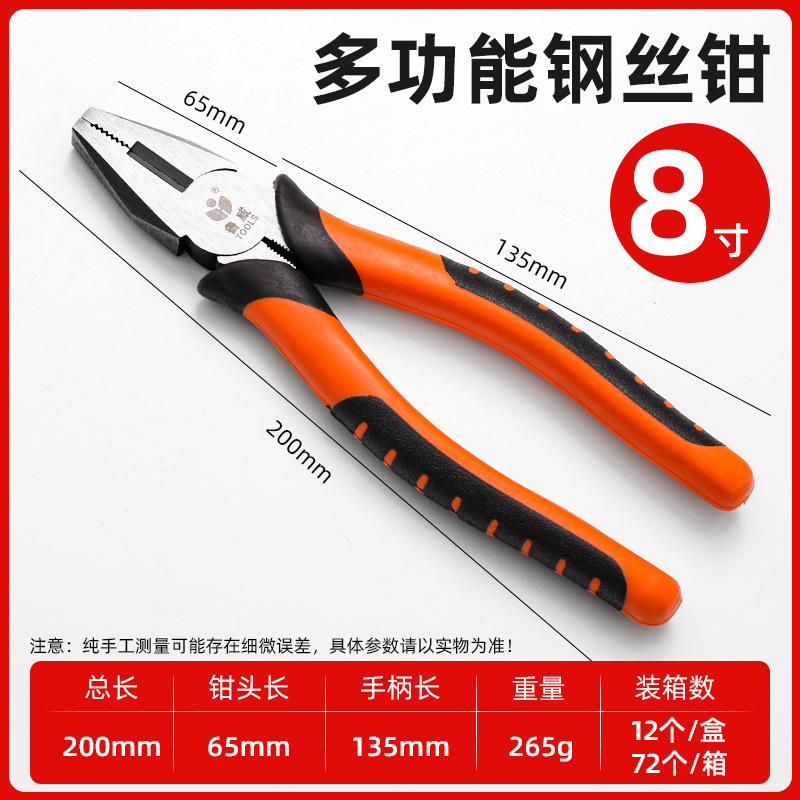 • 타이거 가죽 손잡이 8 인치 와이어 펜치 0.27kg 12 상자, 72 조각))