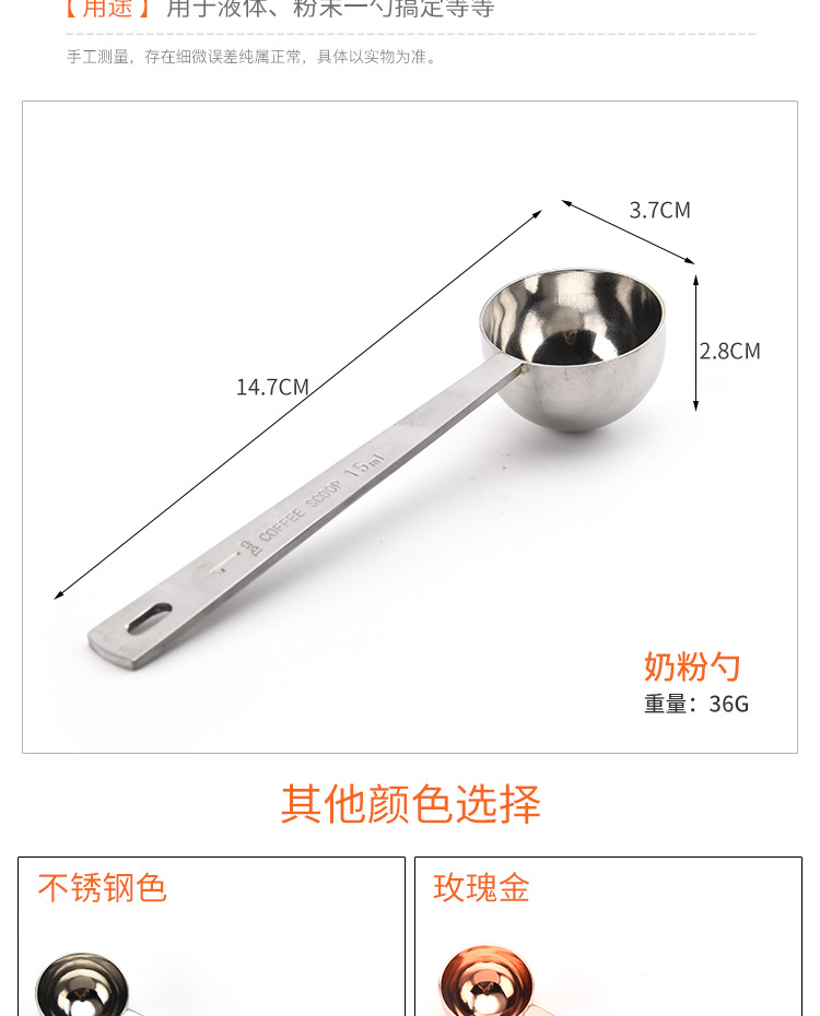 재고 커피 스푼 스테인레스 스틸 30ml 측정 스푼 주방 측정 스푼 우유 파우더 측정 스푼 15ml 과일 파우더 스푼
