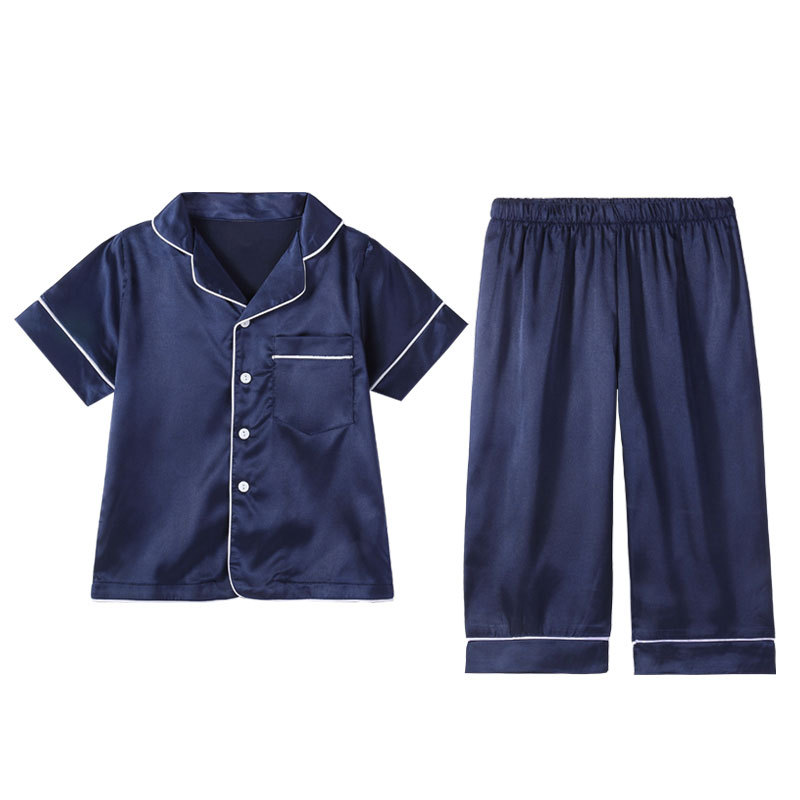 외국에서 인기 있는 여아 잠옷, 봄철 아이스 실크 아동 홈웨어 세트, 여름 얇은 모녀 커플룩스토어 가기
