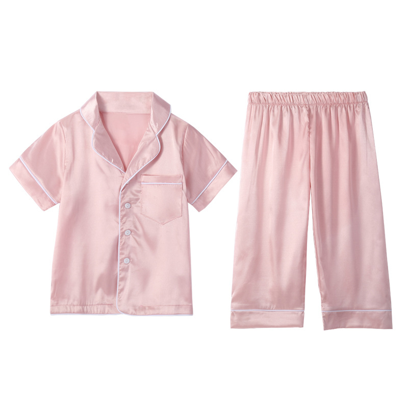 외국에서 인기 있는 여아 잠옷, 봄철 아이스 실크 아동 홈웨어 세트, 여름 얇은 모녀 커플룩