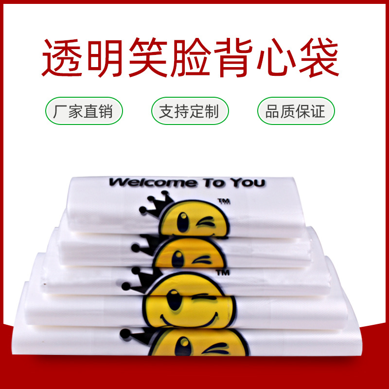 透明笑脸手提袋超市塑料购物袋水果马甲背心袋 方便袋定制袋子¥0.05立即购买