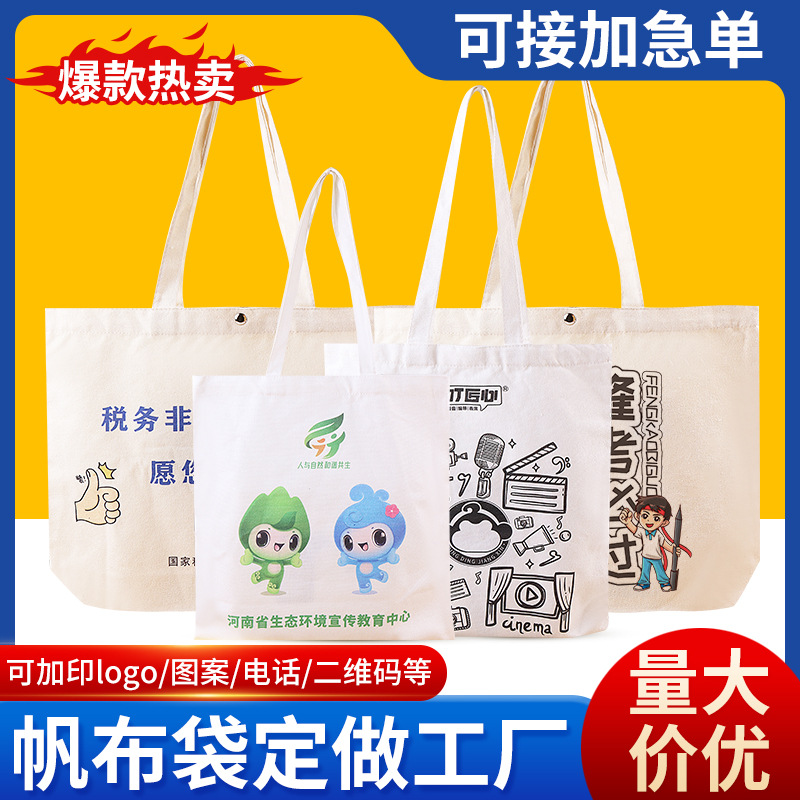 帆布袋定制批发单肩手提彩印logo环保广告购物袋空白大容量帆布包¥2.4立即购买