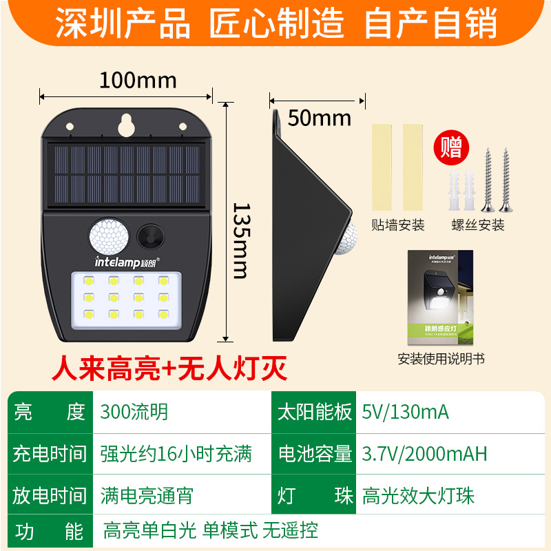 새로운 태양 광 인체 유도 홈 야외 조명 led 방수 정원 안뜰 벽 램프는 어두워지면 자동으로 켜집니다.