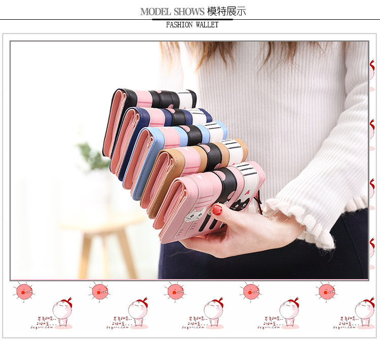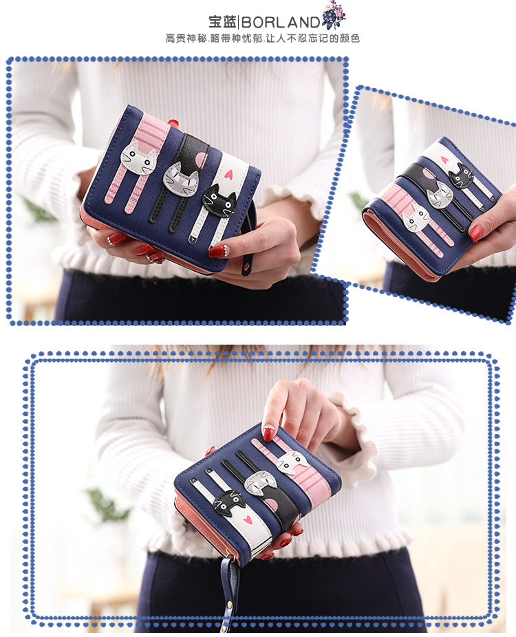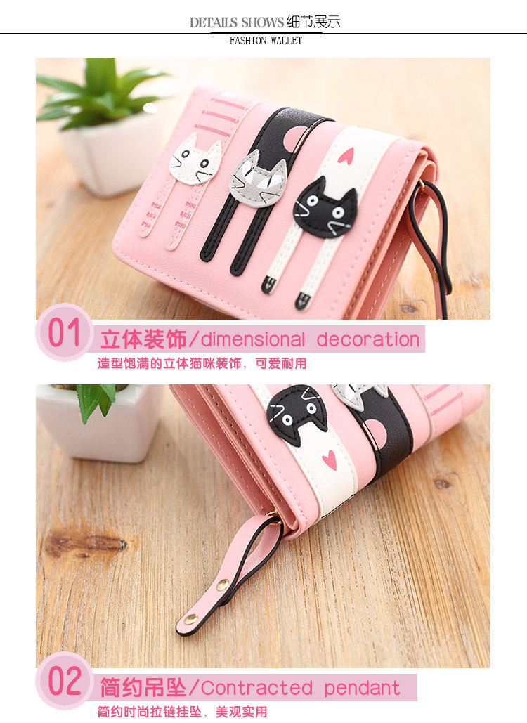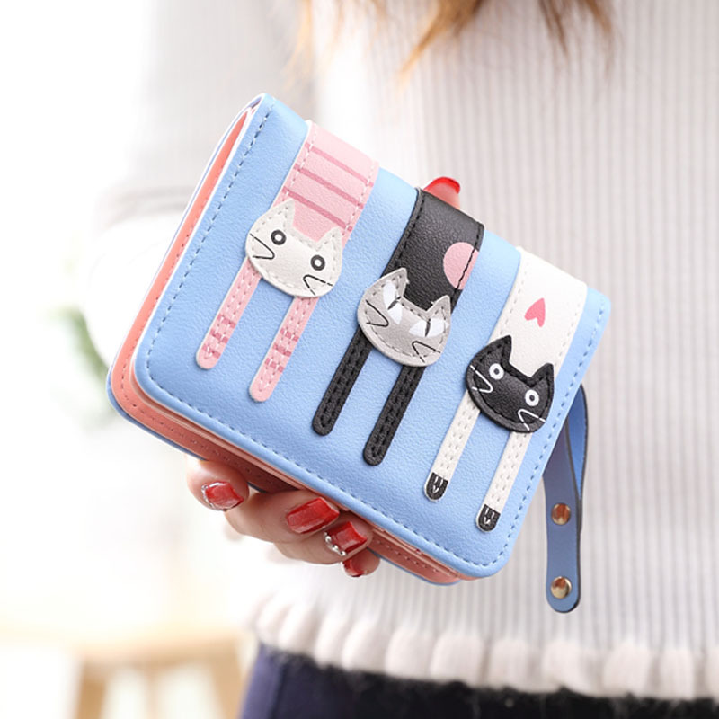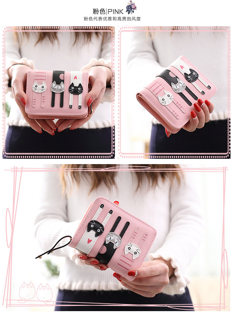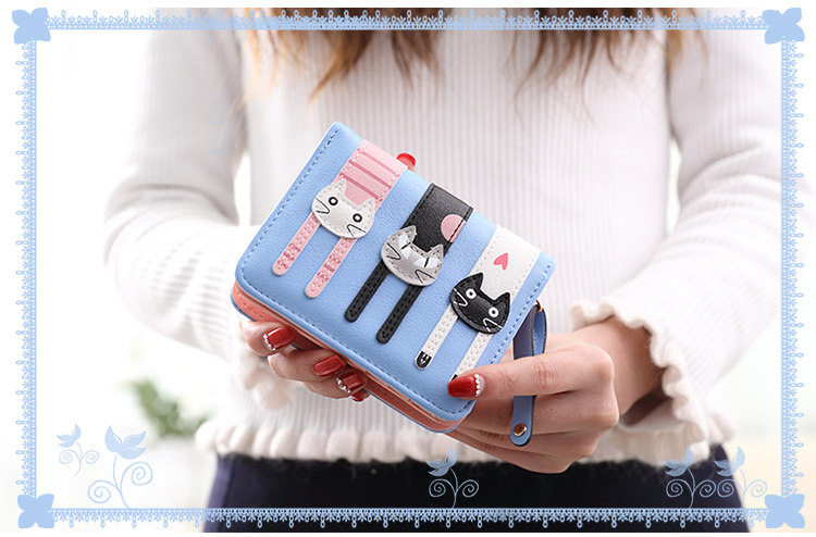 2024 짧은 여성 지갑 여성 지퍼 버클 2 접힌 만화 귀여운 세 고양이 학생 부드러운 얼굴 새로운 변화스토어 가기