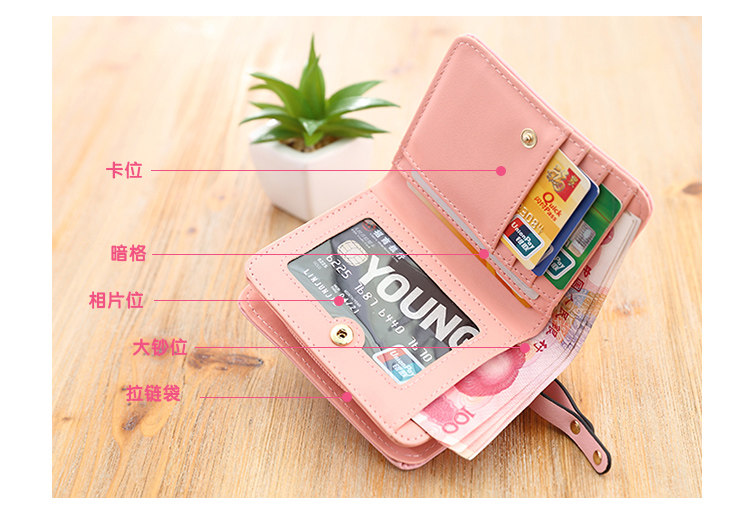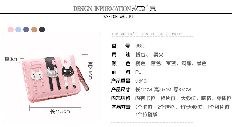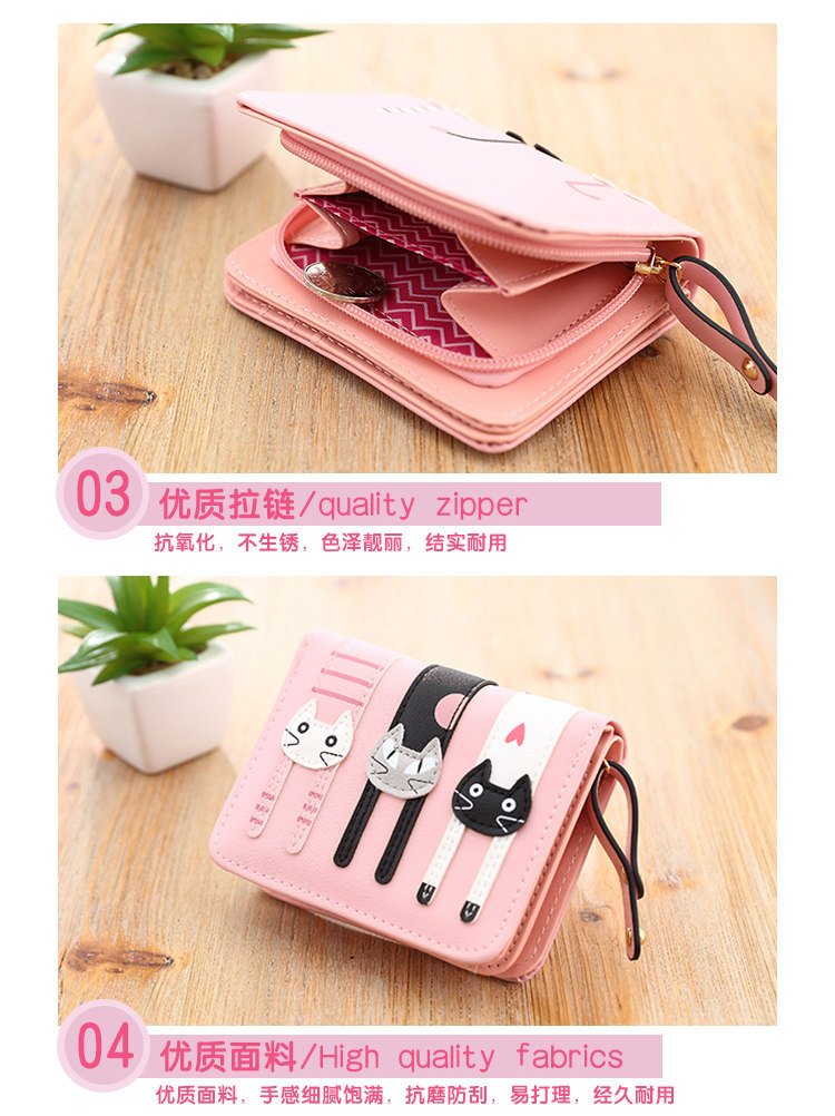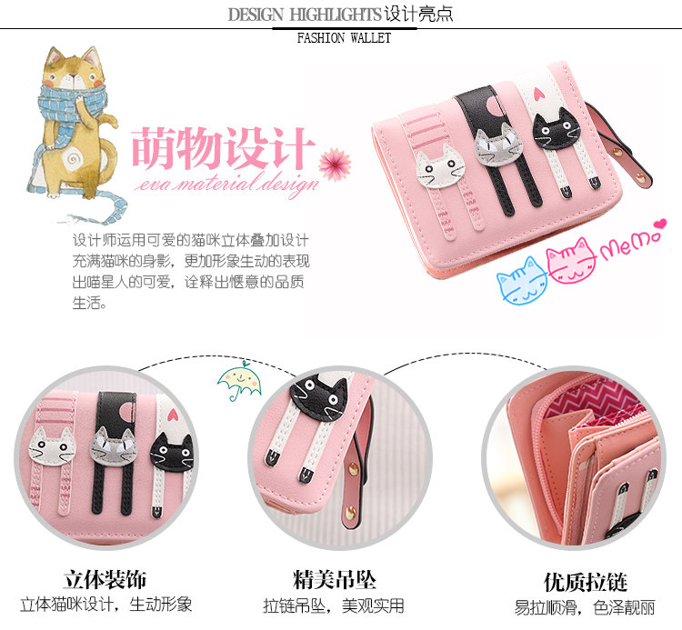 2024 짧은 여성 지갑 여성 지퍼 버클 2 접힌 만화 귀여운 세 고양이 학생 부드러운 얼굴 새로운 변화