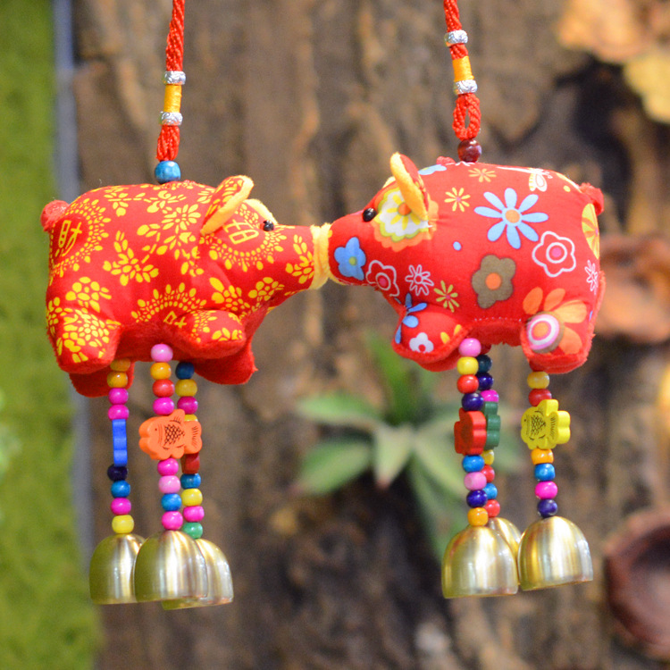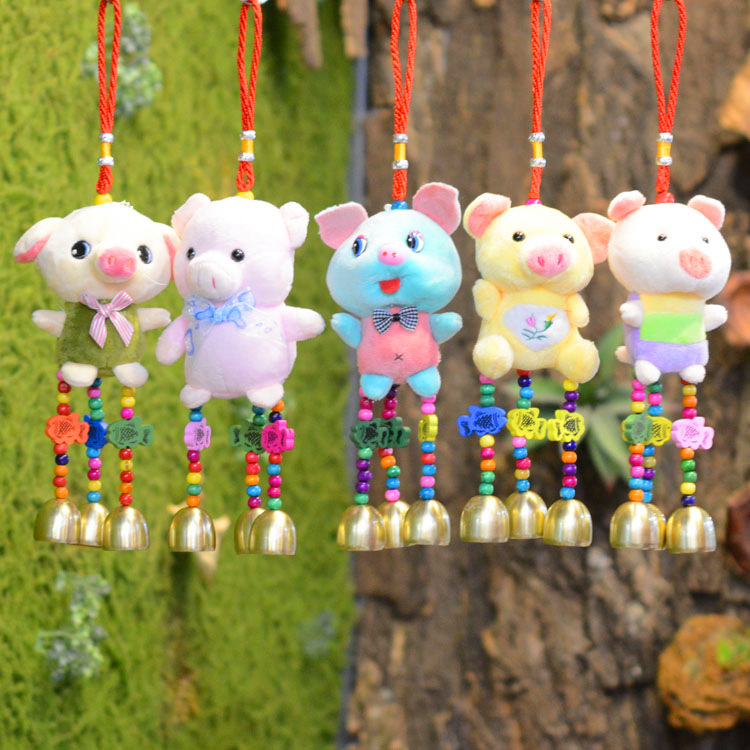 生肖猪年毛绒动物 绒布猪风铃 挂件房间挂饰车挂热销新款可定制