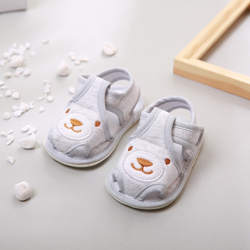 • 수 놓은 곰 회색 쇠고기 단독 샌들
