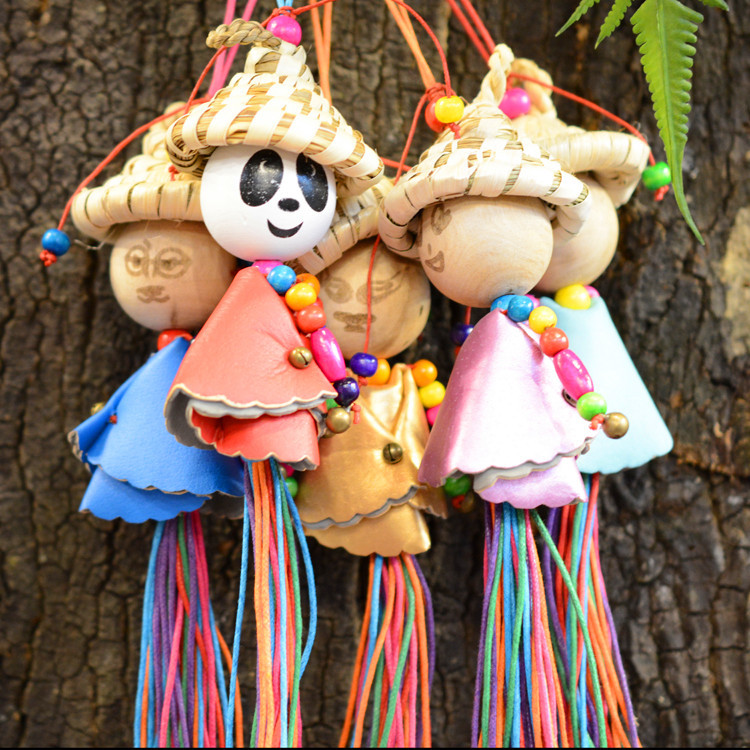 厂家批发草帽小人风铃 云南民族彩色蜡线皮裙草帽铃铛挂饰小人