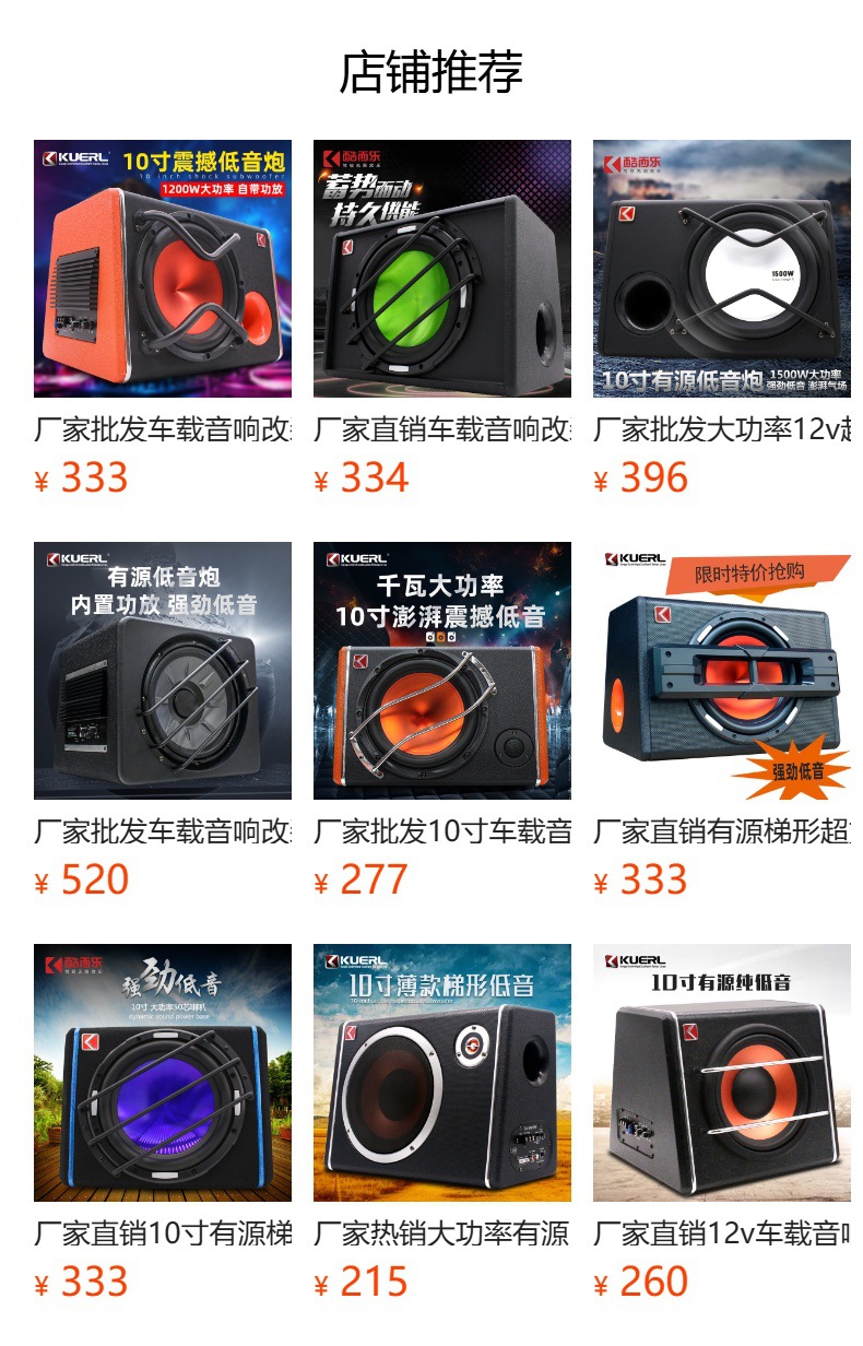 공장 직접 액티브 서브 우퍼 12V 고출력 자동차 오디오 수정 스피커 자동차 서브 우퍼 10 인치스토어 가기