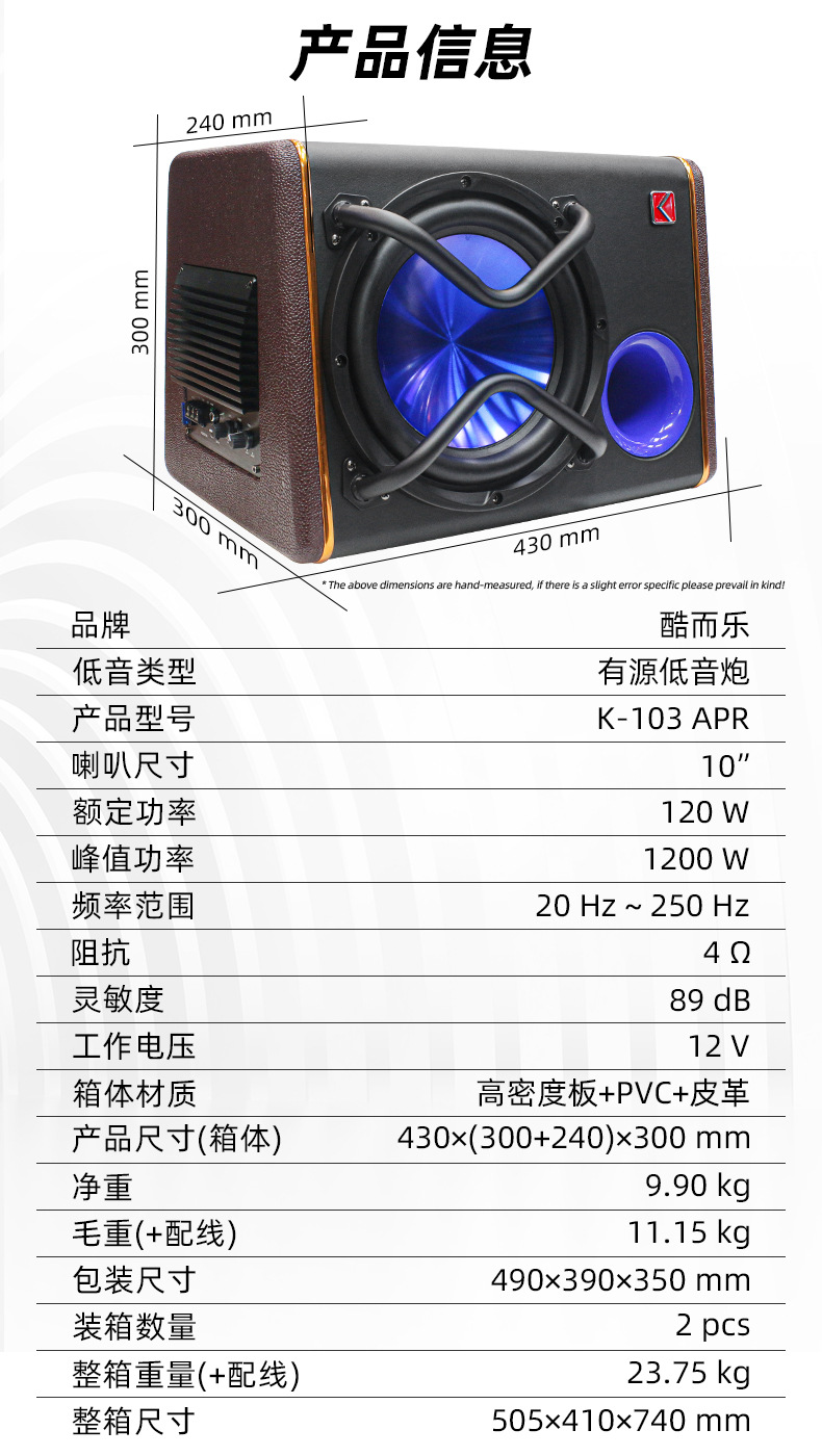 공장 직접 액티브 서브 우퍼 12V 고출력 자동차 오디오 수정 스피커 자동차 서브 우퍼 10 인치