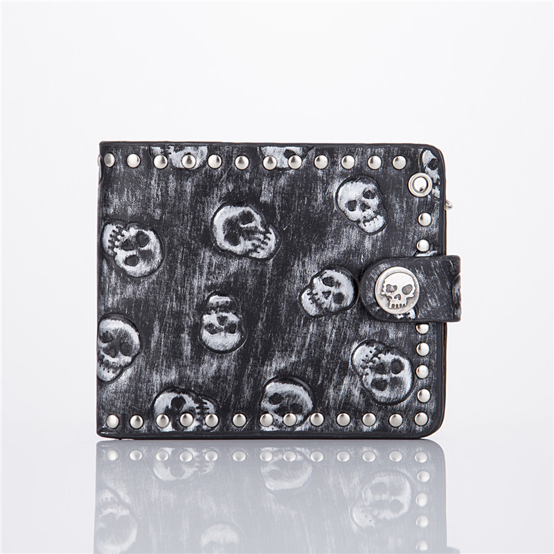 해외 직수입 지갑, 유럽 및 미국 스타일의 개성 넘치는 펑크 지갑, 해골 모양 다중 카드 슬롯 동전 지갑, 도난 방지 체인스토어 가기