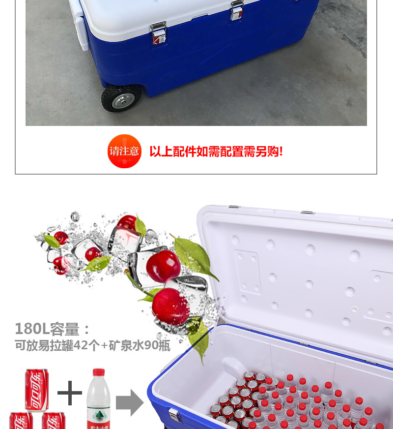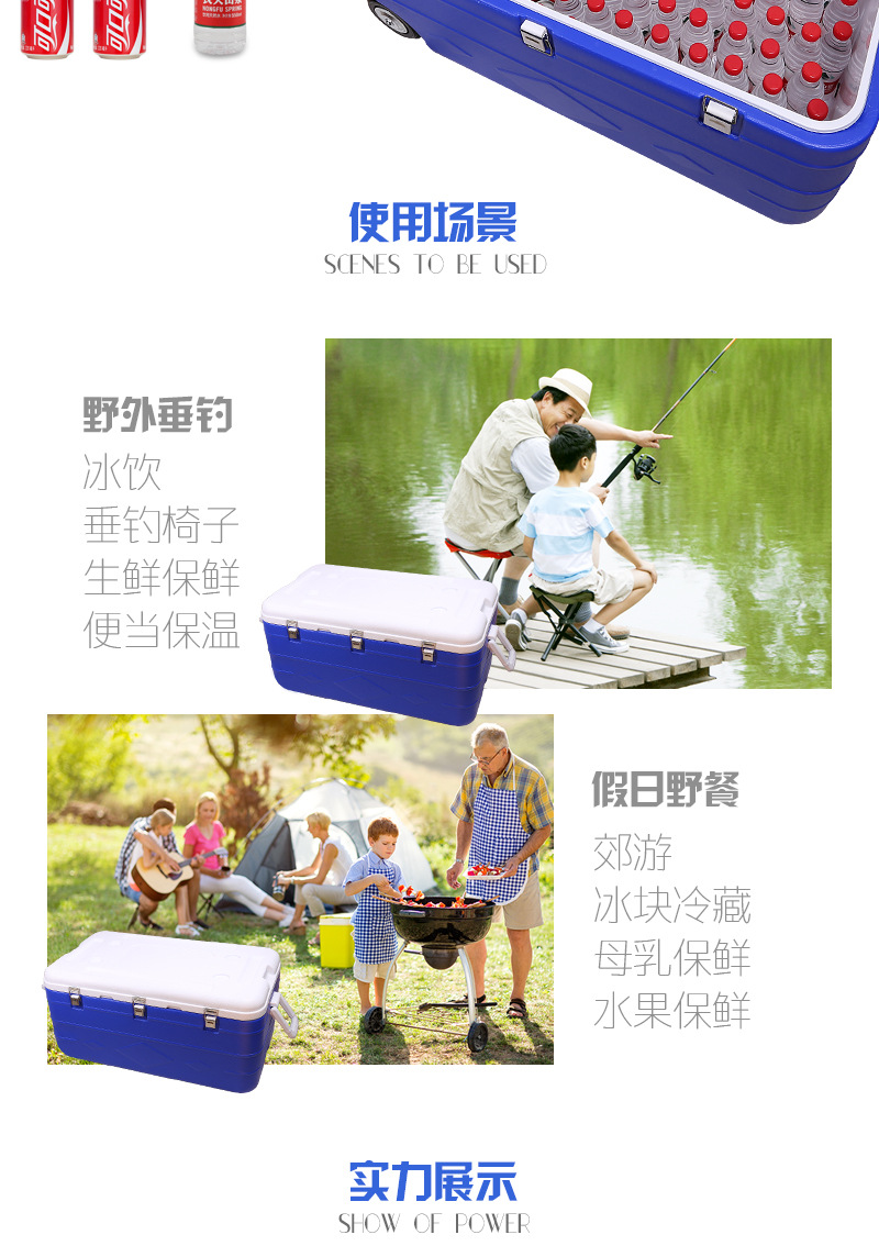3、冷藏:由于冷空气向下流动,所以应先将各种食品或饮品放于箱内,再将冰块或专用冰盒(冰盒须预先放入冰箱或冰柜冷冻8小时以上)置于食物上面,从而取得更佳效果。保温箱须长期盖密,每次取完食物之后,须立即盖好盖子以免冷气流失。此外,应避免阳光直射使保冷力降低。