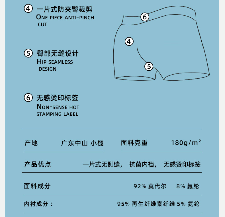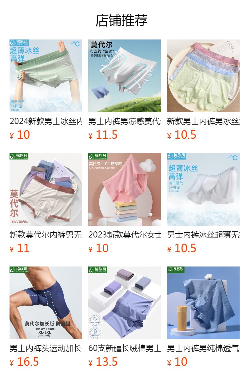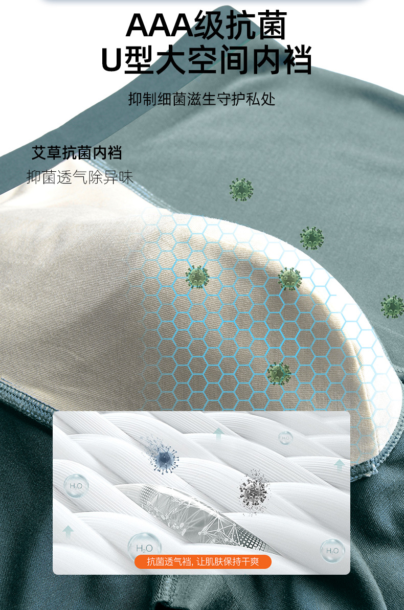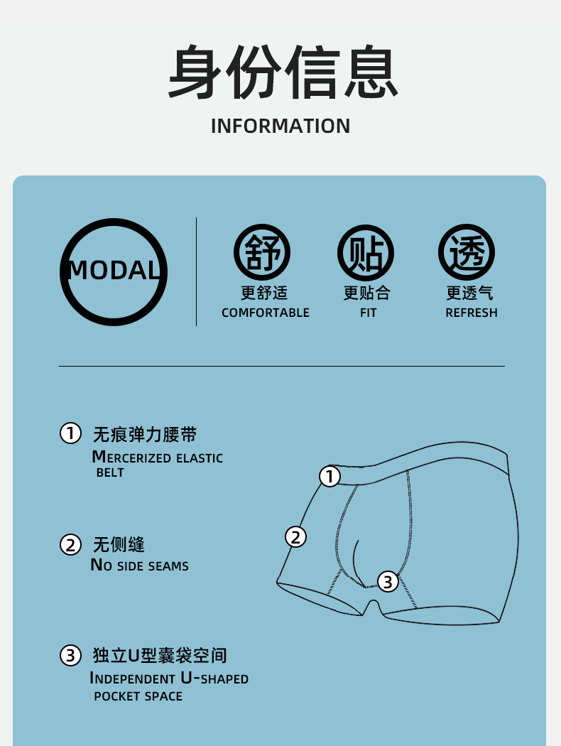 남성 속옷, 남성용 심리스 50수 모달 항균 미드 웨이스트 통기성 복서 브리프, 남성용 복서 브리프, 중산스토어 가기