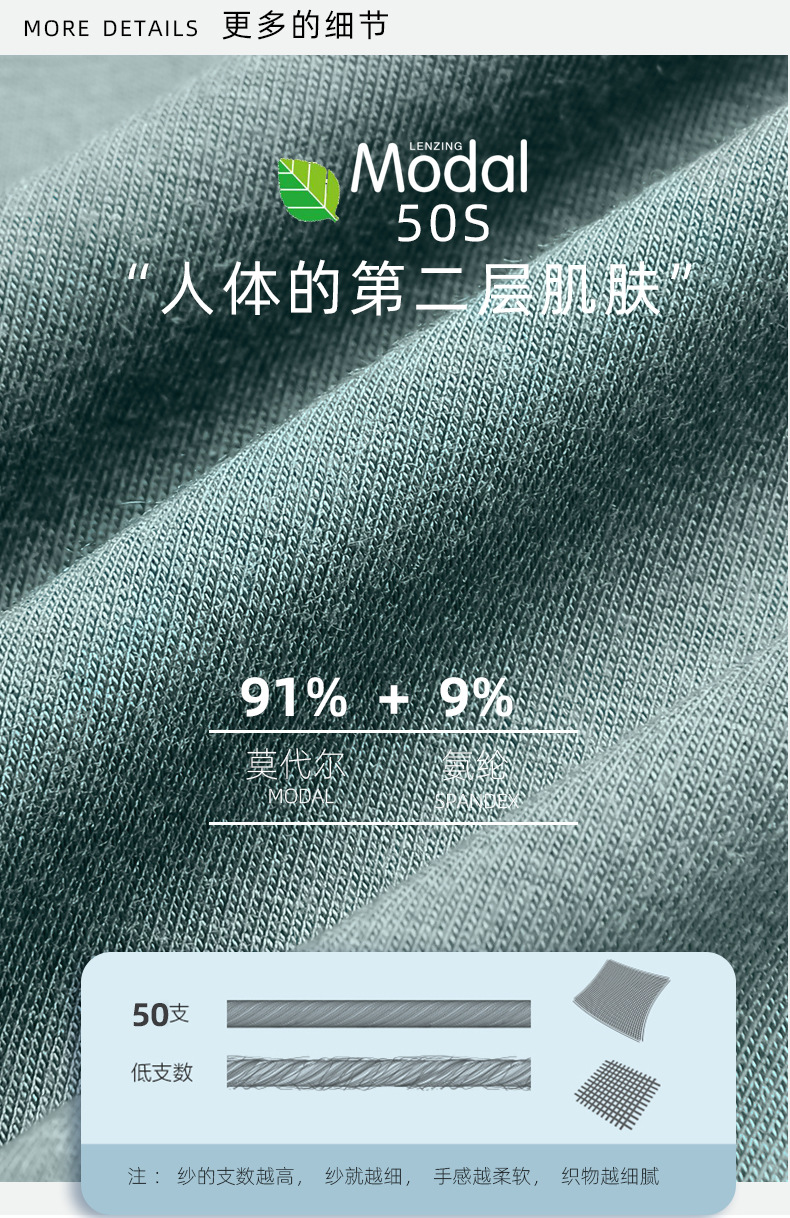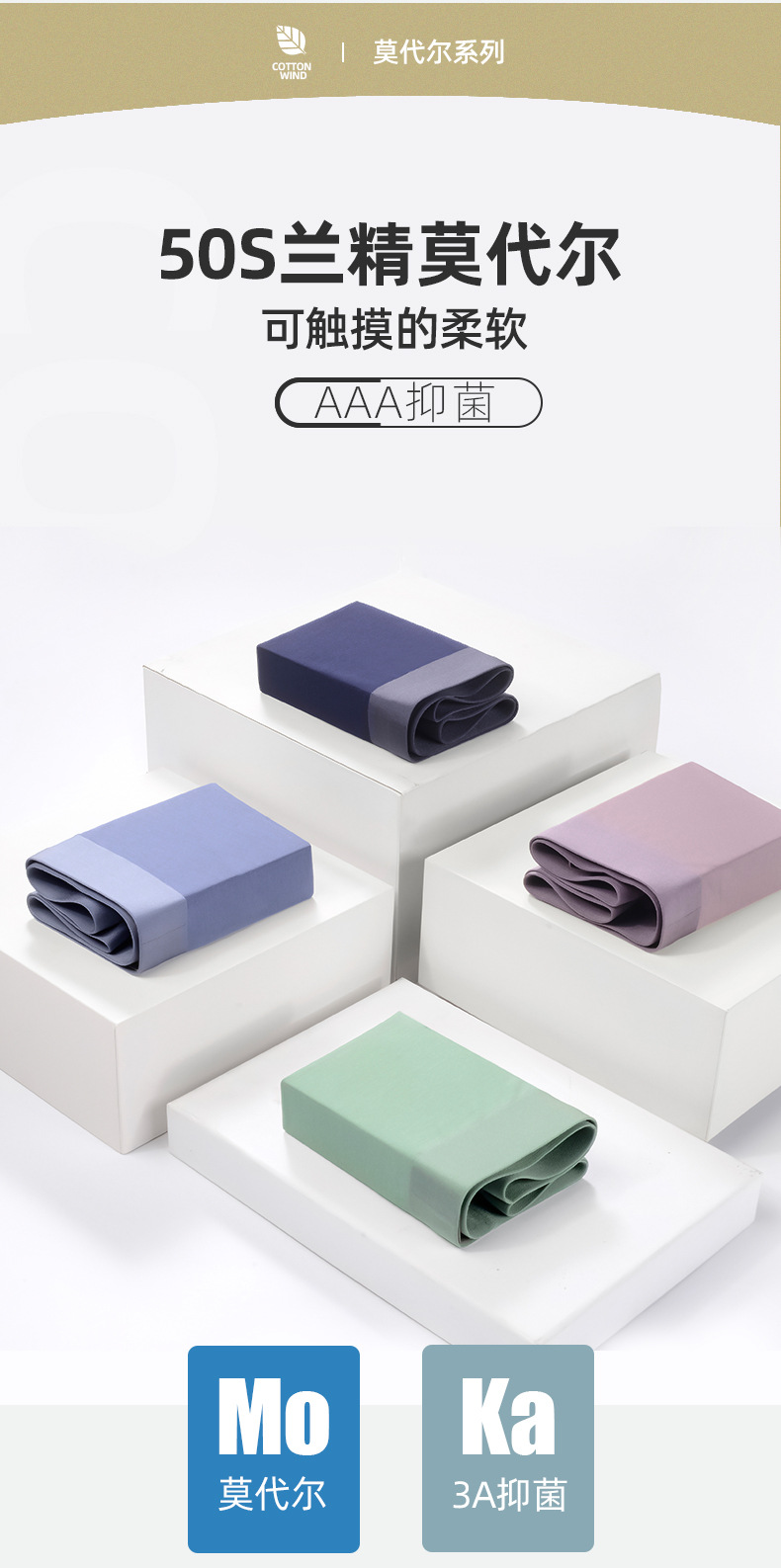 남성 속옷, 남성용 심리스 50수 모달 항균 미드 웨이스트 통기성 복서 브리프, 남성용 복서 브리프, 중산