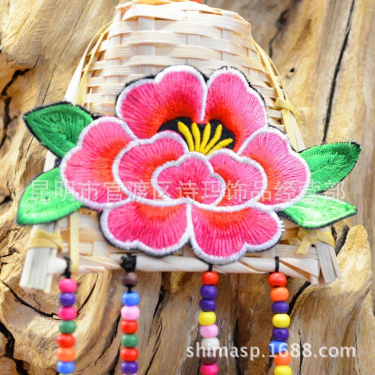 云南民族风4铃绣花片簸箕丰满风铃酒吧客栈挂饰挂件风铃可订制
