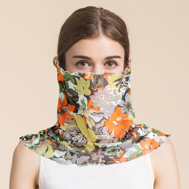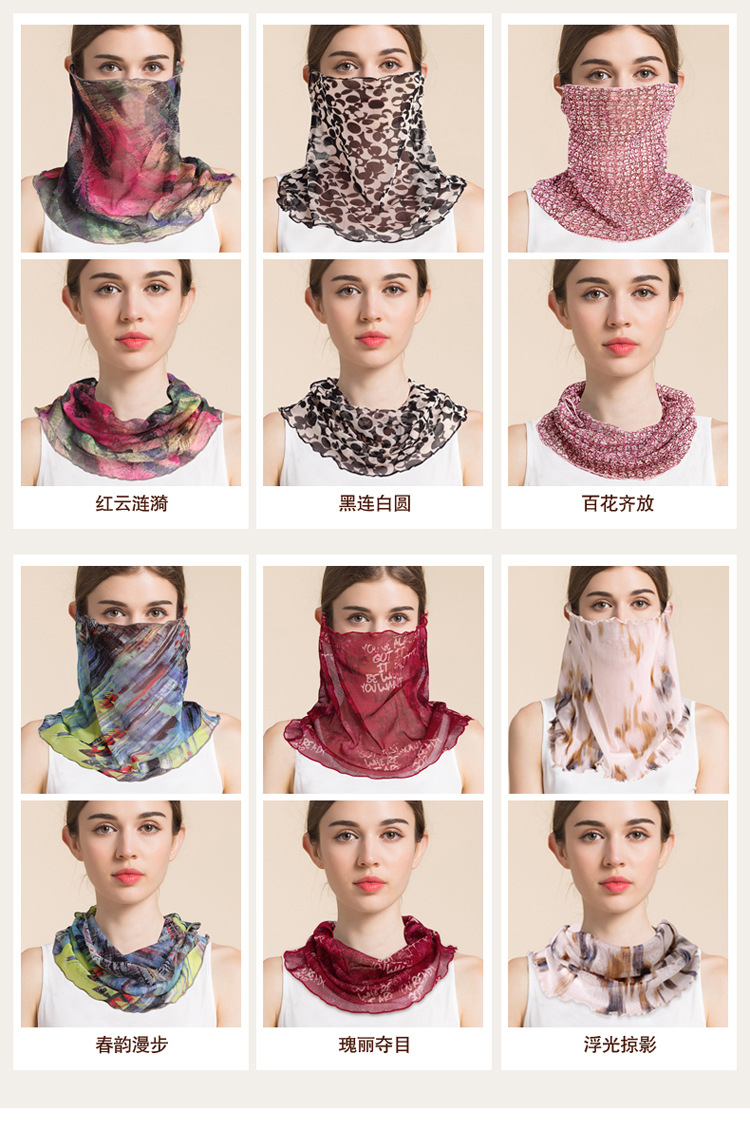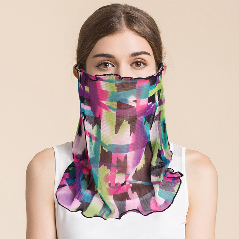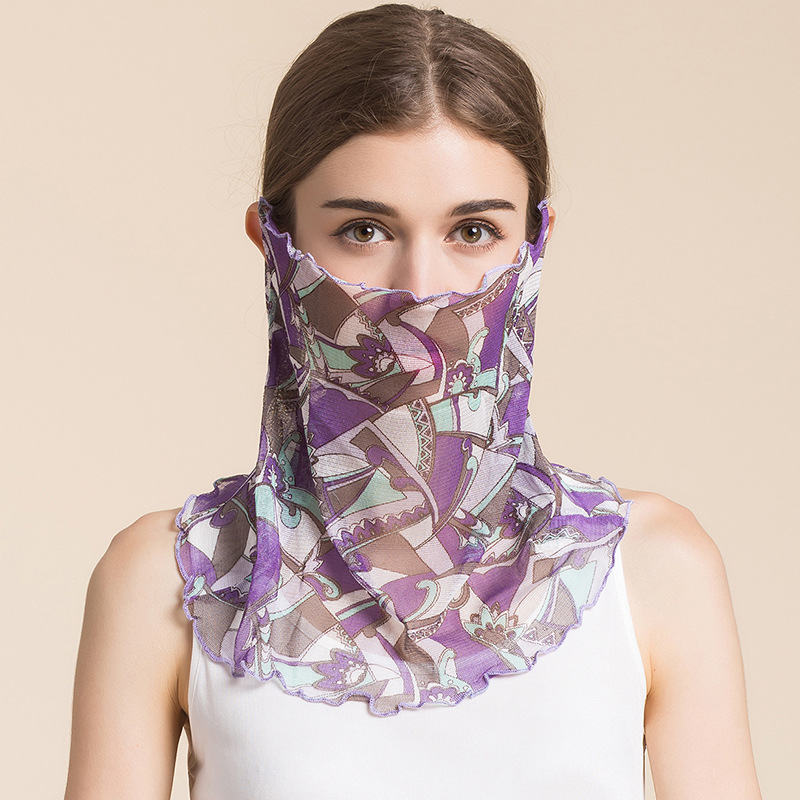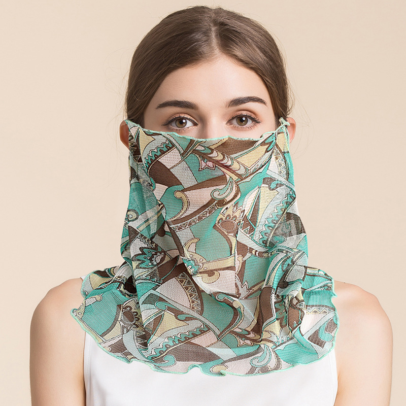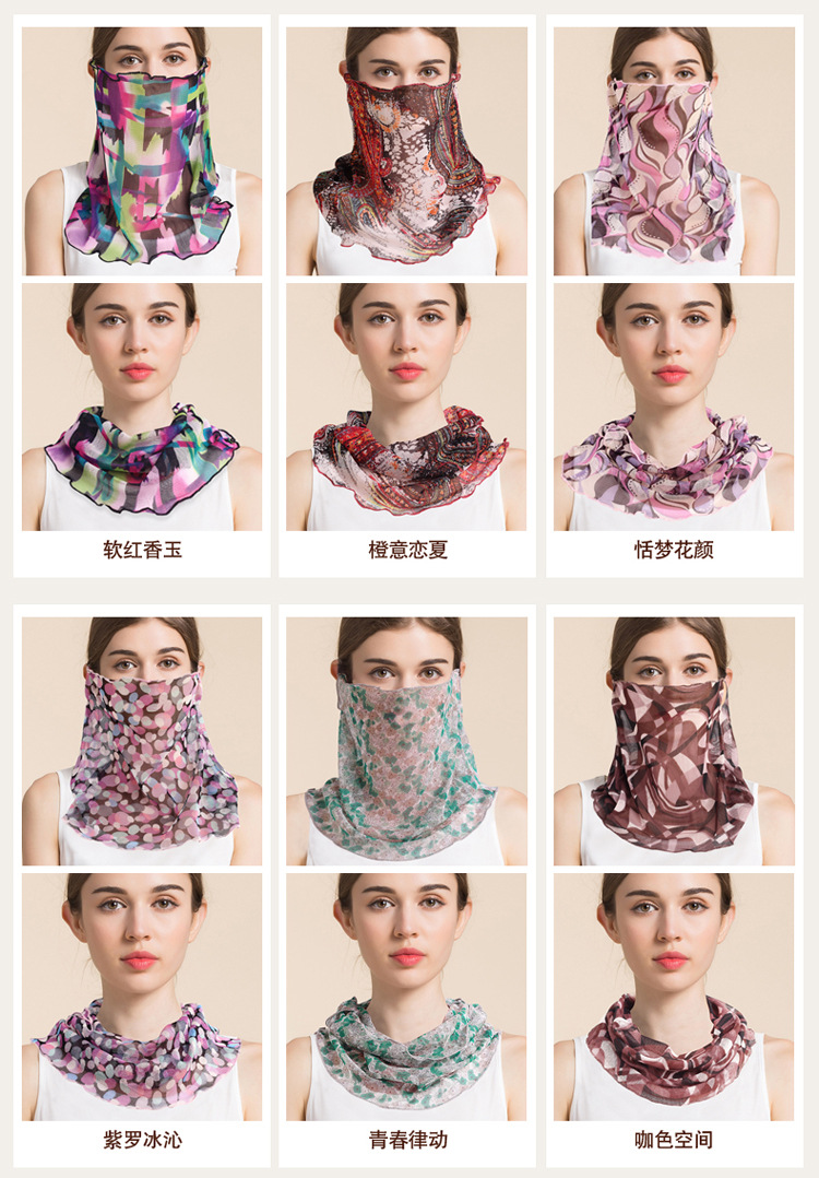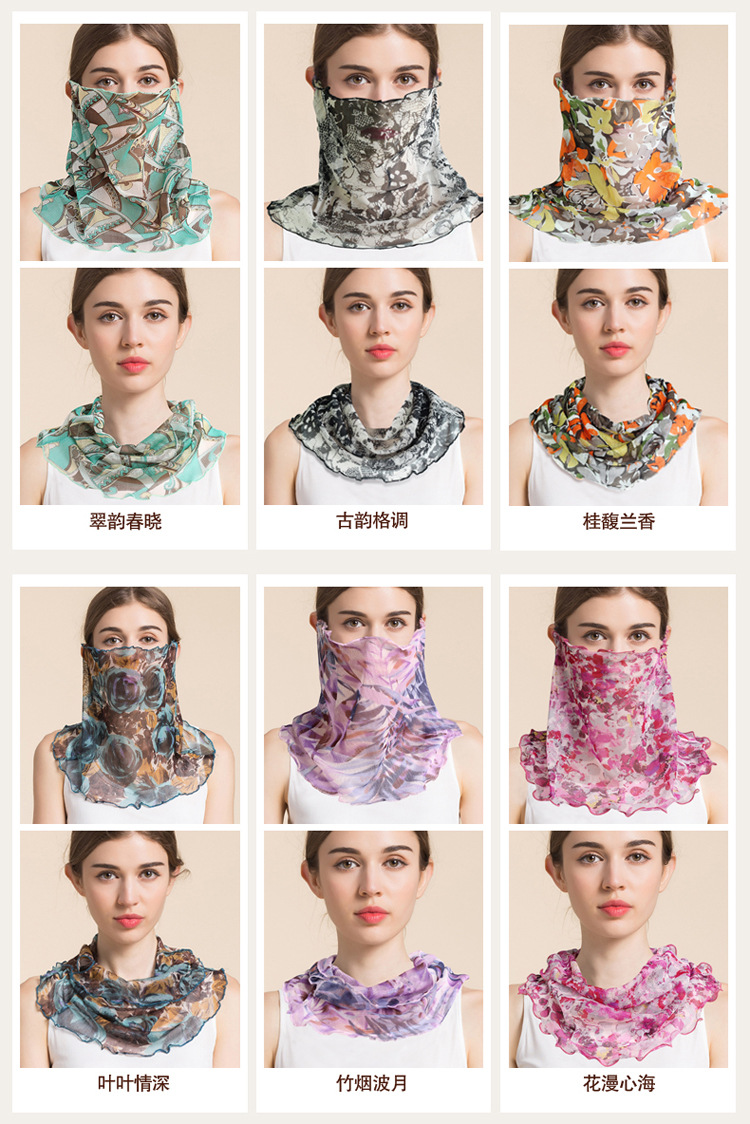 여름 얇은 실크 메쉬 스카프 여성용 풀오버 뽕나무 실크 자외선 차단제 마스크 마스크 마스크 다양한 실크 스카프 목 세트