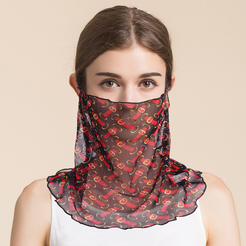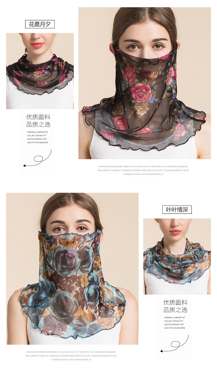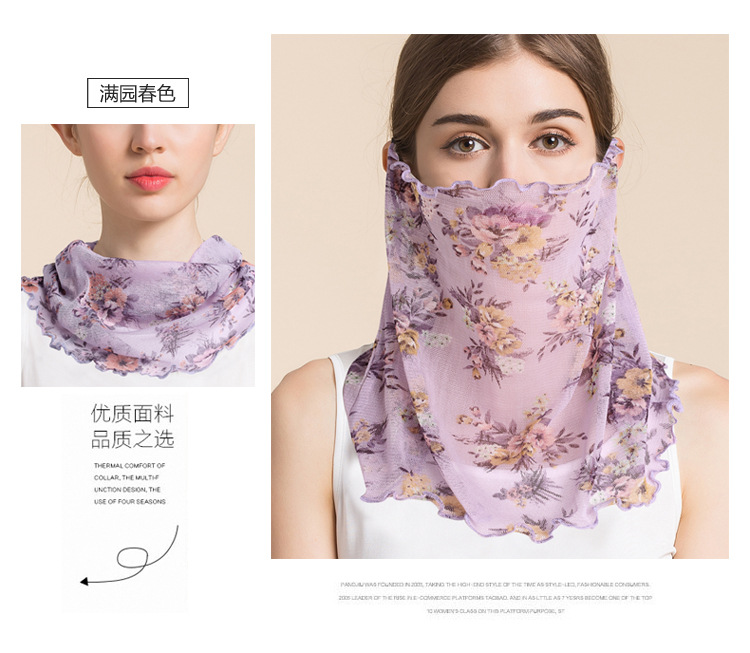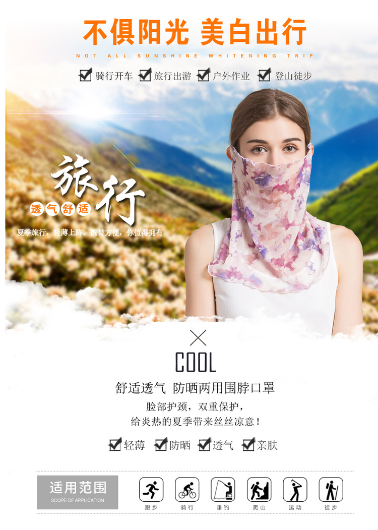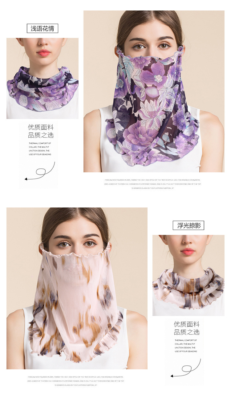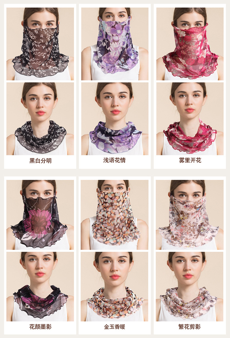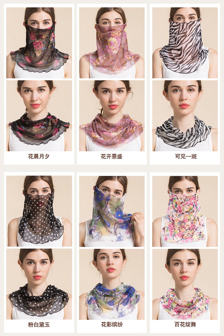 여름 얇은 실크 메쉬 스카프 여성용 풀오버 뽕나무 실크 자외선 차단제 마스크 마스크 마스크 다양한 실크 스카프 목 세트