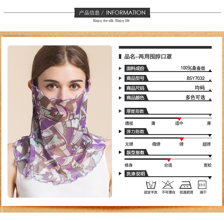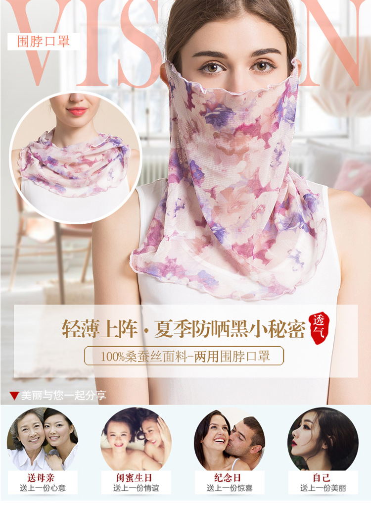 여름 얇은 실크 메쉬 스카프 여성용 풀오버 뽕나무 실크 자외선 차단제 마스크 마스크 마스크 다양한 실크 스카프 목 세트스토어 가기