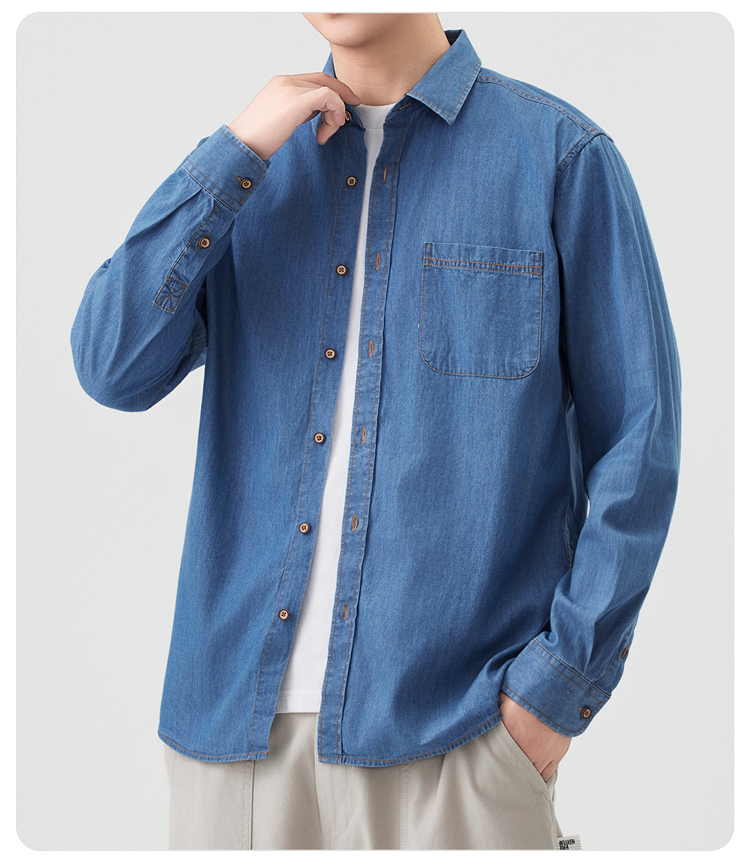 동유 남성복 봄 신상 순면 일본풍 데님 셔츠 남성 순면 슬림핏 캐주얼 재킷 남성 재고 도매스토어 가기
