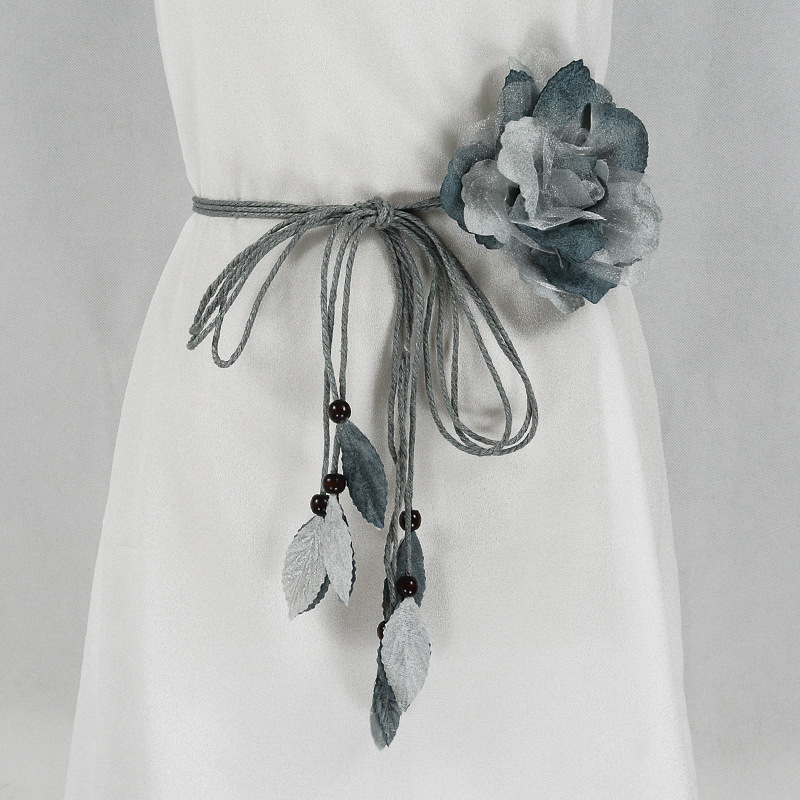 캐주얼 모든 경기 쉬폰 큰 꽃 여자의 얇은 벨트 달콤한 매듭 허리 체인 한국식 긴 술 장식 원피스 벨트