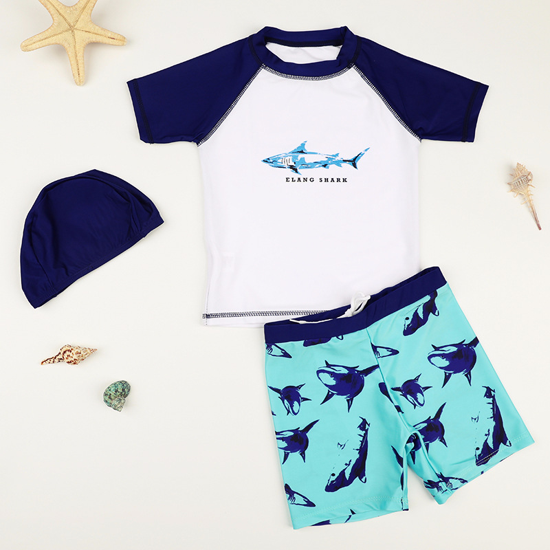 소년 새로운 한국 스타일 어린이 분할 수영복 해변 태양 보호 소년 아기 수영복 세트 상어 패턴