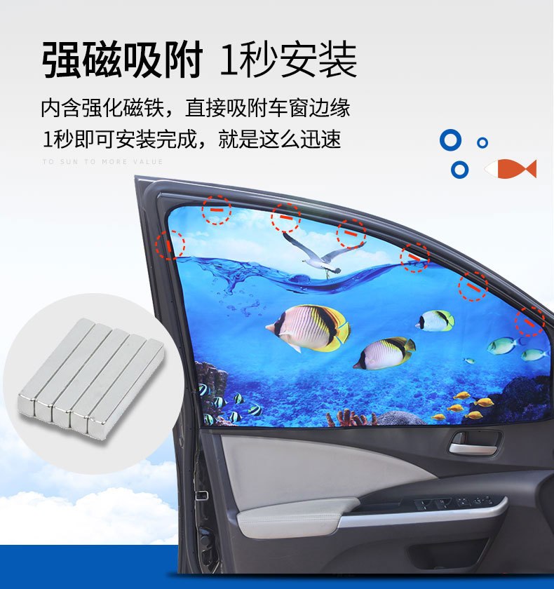 자동차 창문 차양막 여름철 자외선 차단 및 단열 차양막 자동차용 차양판 측면 자석식 편리한 사용스토어 가기