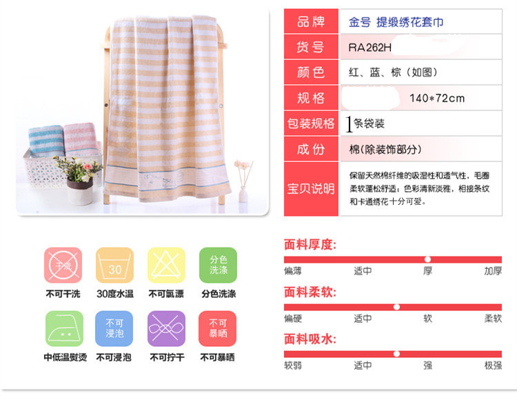 골드 순면 목욕 타올 스트라이프 흡수 자수 커플 성인 가정용 가슴 랩 대형 타월 RC262H스토어 가기