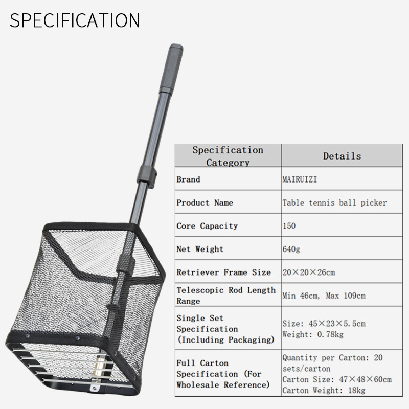 • 검정색 알루미늄 합금 하드 네트 탁구공 수거기