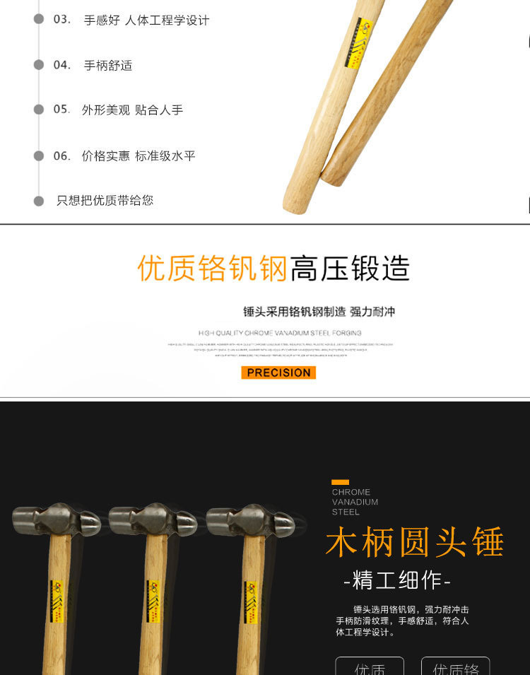 공장 도매 나무 손잡이 둥근 머리 망치 고 탄소강 망치 다기능 건설 장식 방폭형 둥근 머리 망치스토어 가기
