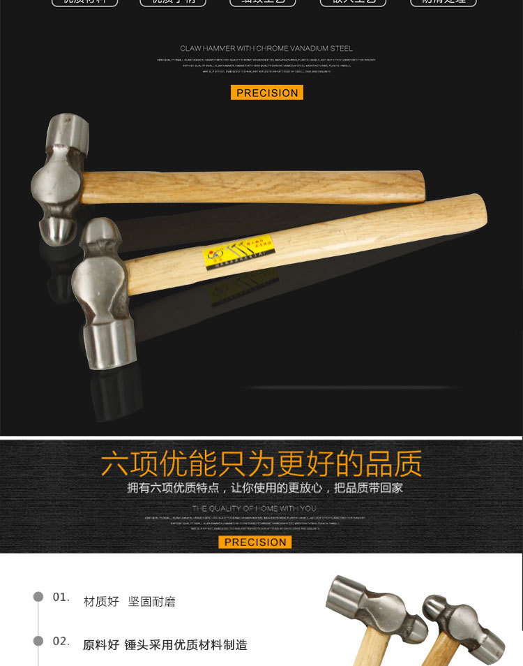 • 나무 손잡이 볼핀 해머 0.5파운드, 개당 100개