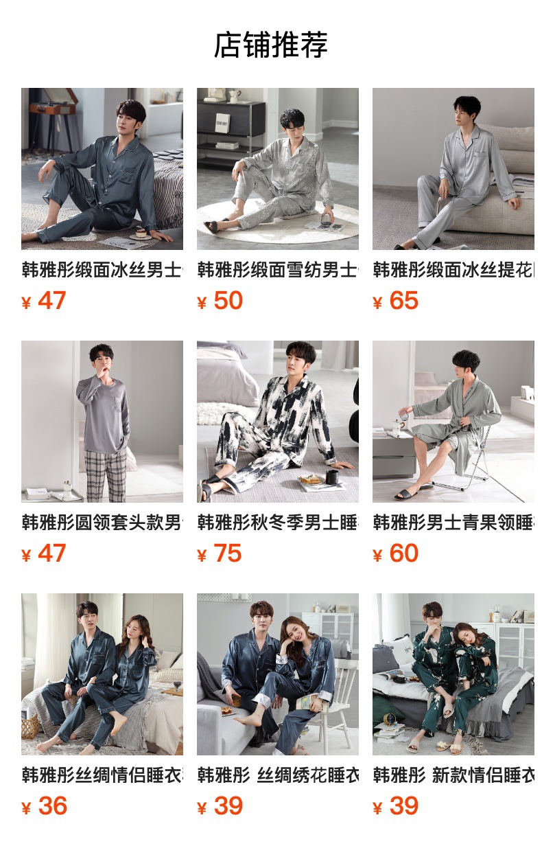한 Yatong 실크 남자의 잠옷 새로운 봄과 여름 인쇄 실크 세트 가을 여자의 긴 소매 가정 옷스토어 가기