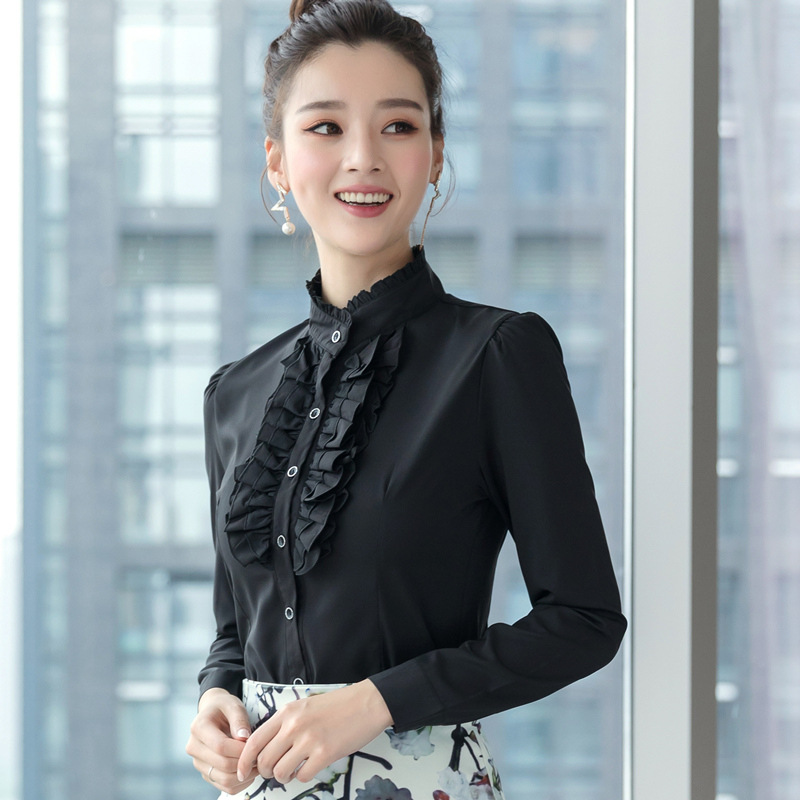 화이트 셔츠 여성의 긴 소매 칼라 한국 전문 통근 나무 귀 달콤한 쉬폰 셔츠 한국 재킷 도매스토어 가기