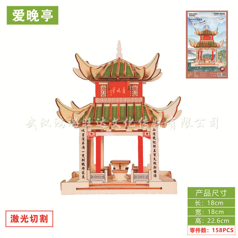 DIY 나무 시뮬레이션 빌딩 모델 어린이 나무 입체 퍼즐 조립 완구 사랑 이브닝 파빌리온스토어 가기