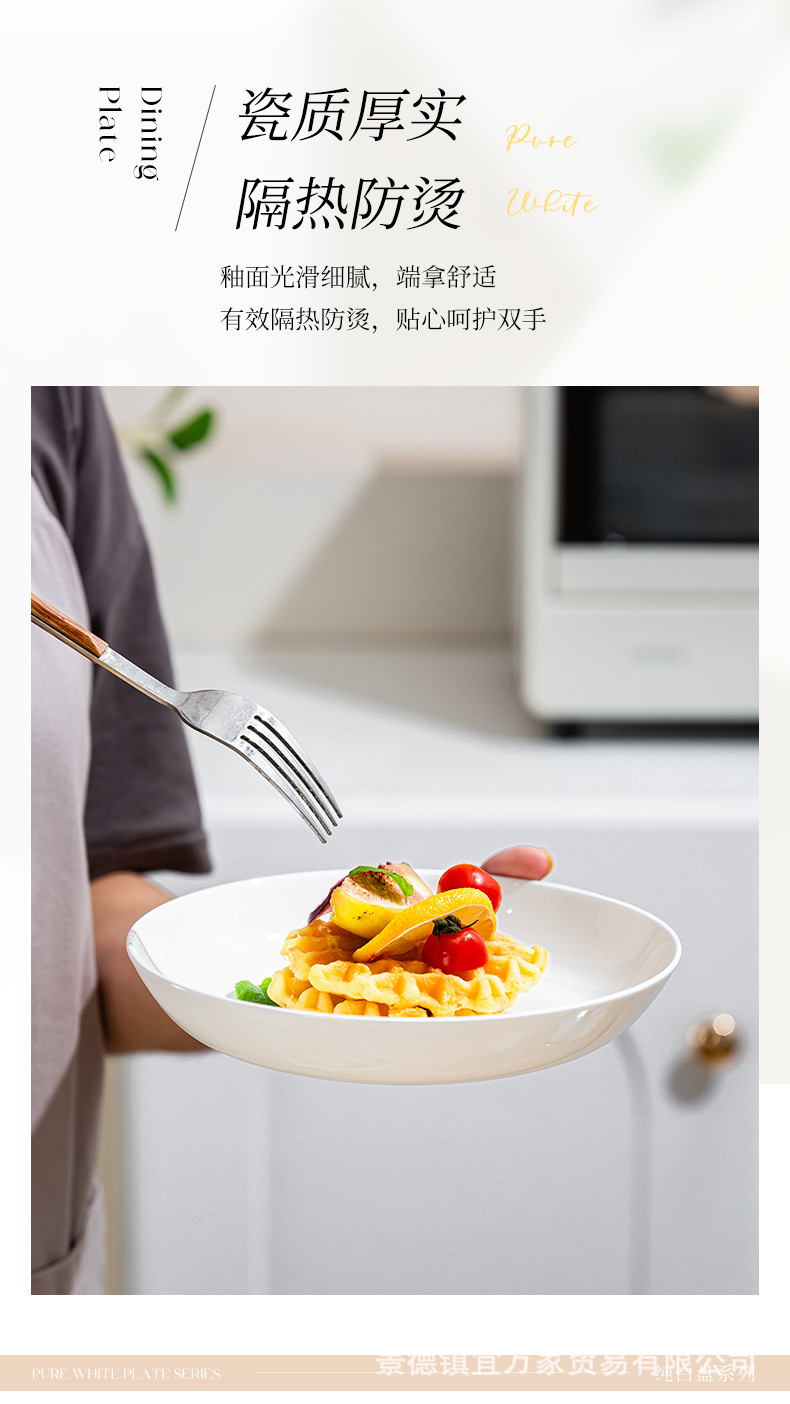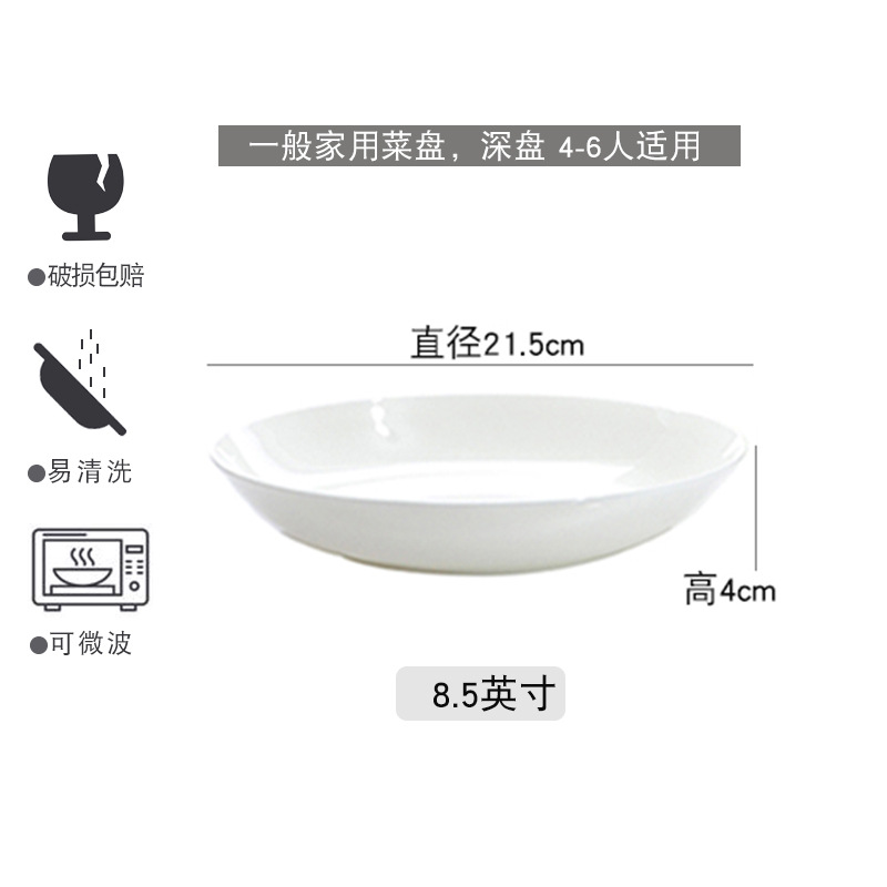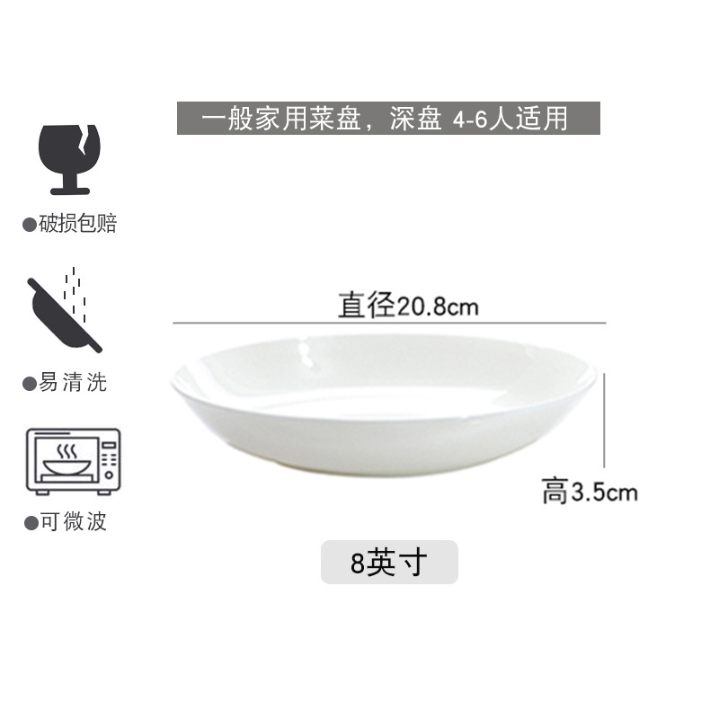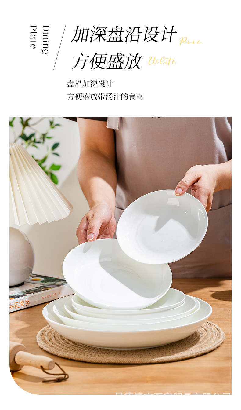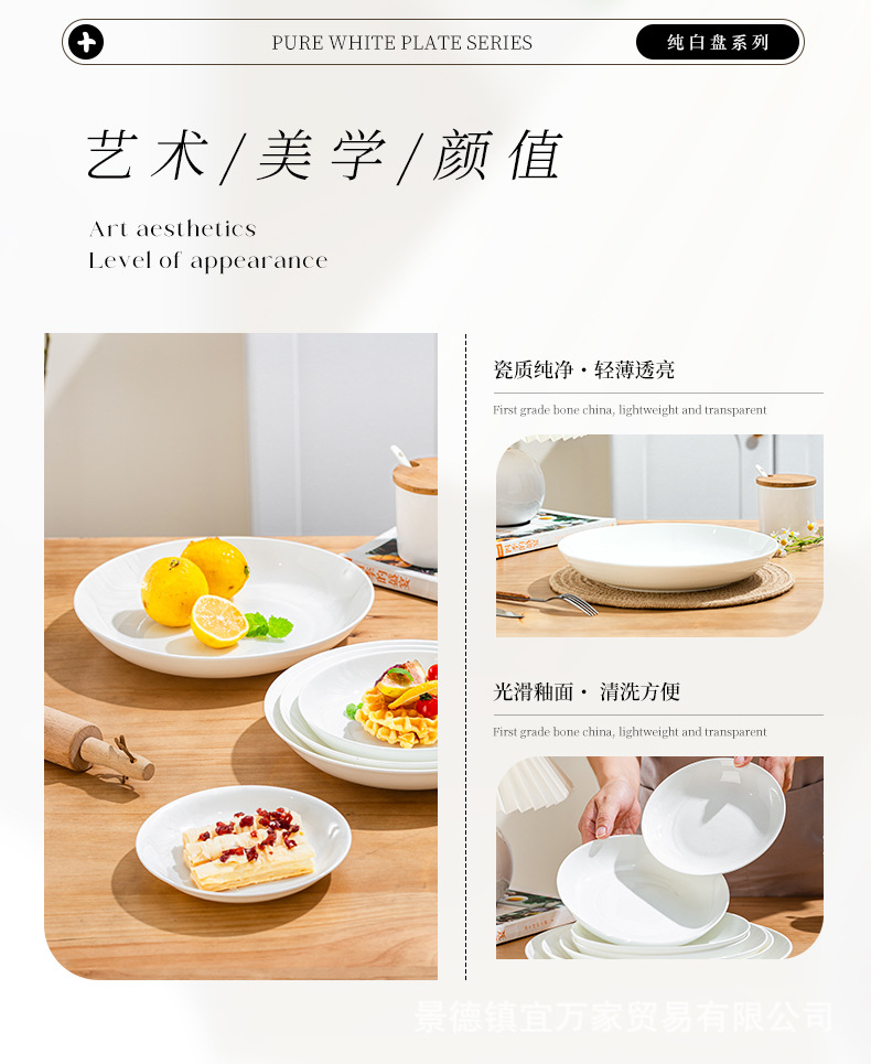 경덕진 순백색 본차이나 접시, 가정용 원형 달빛 접시, 독창적인 양식 접시, 본차이나 접시, 호텔 도자기 접시