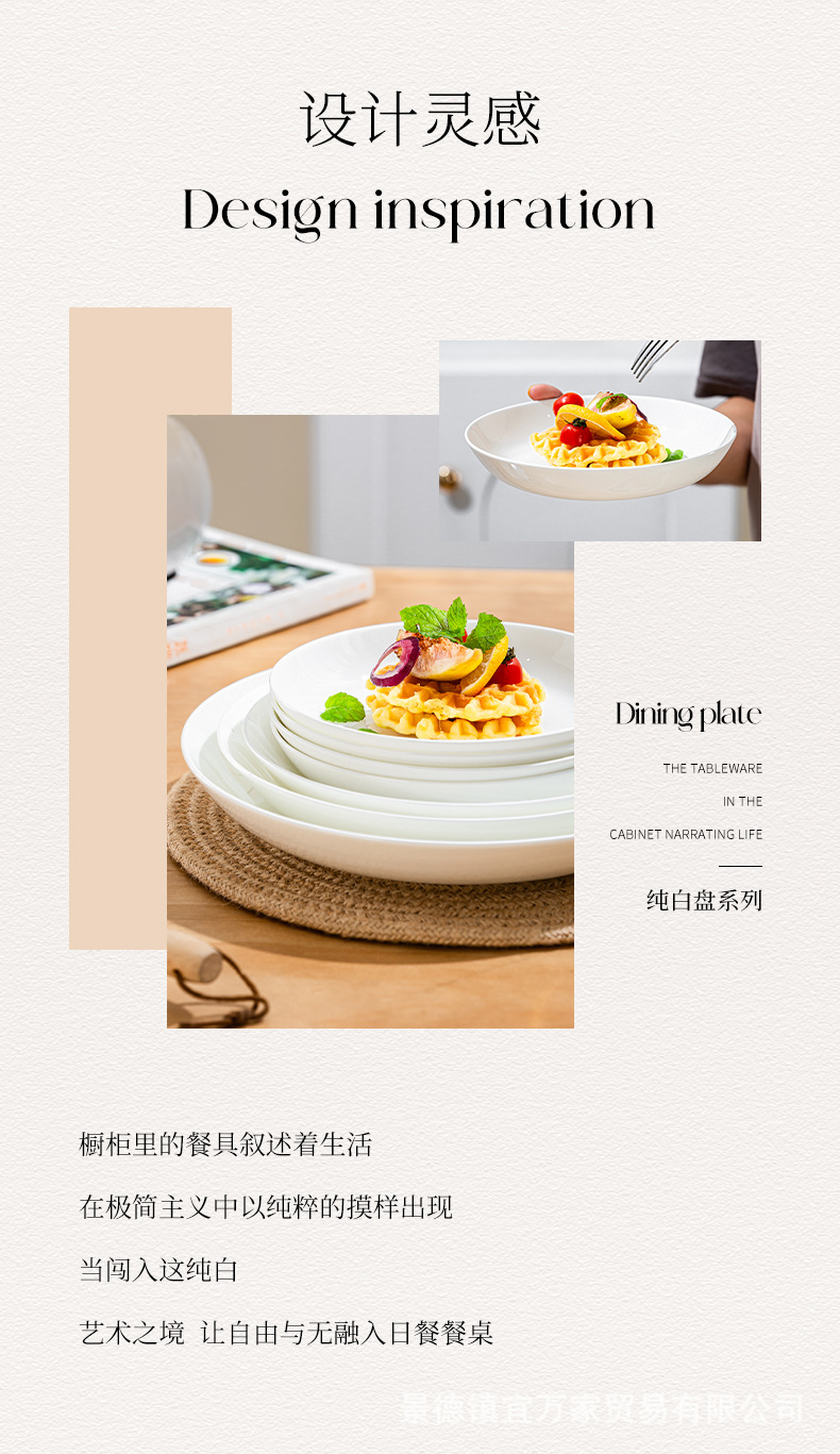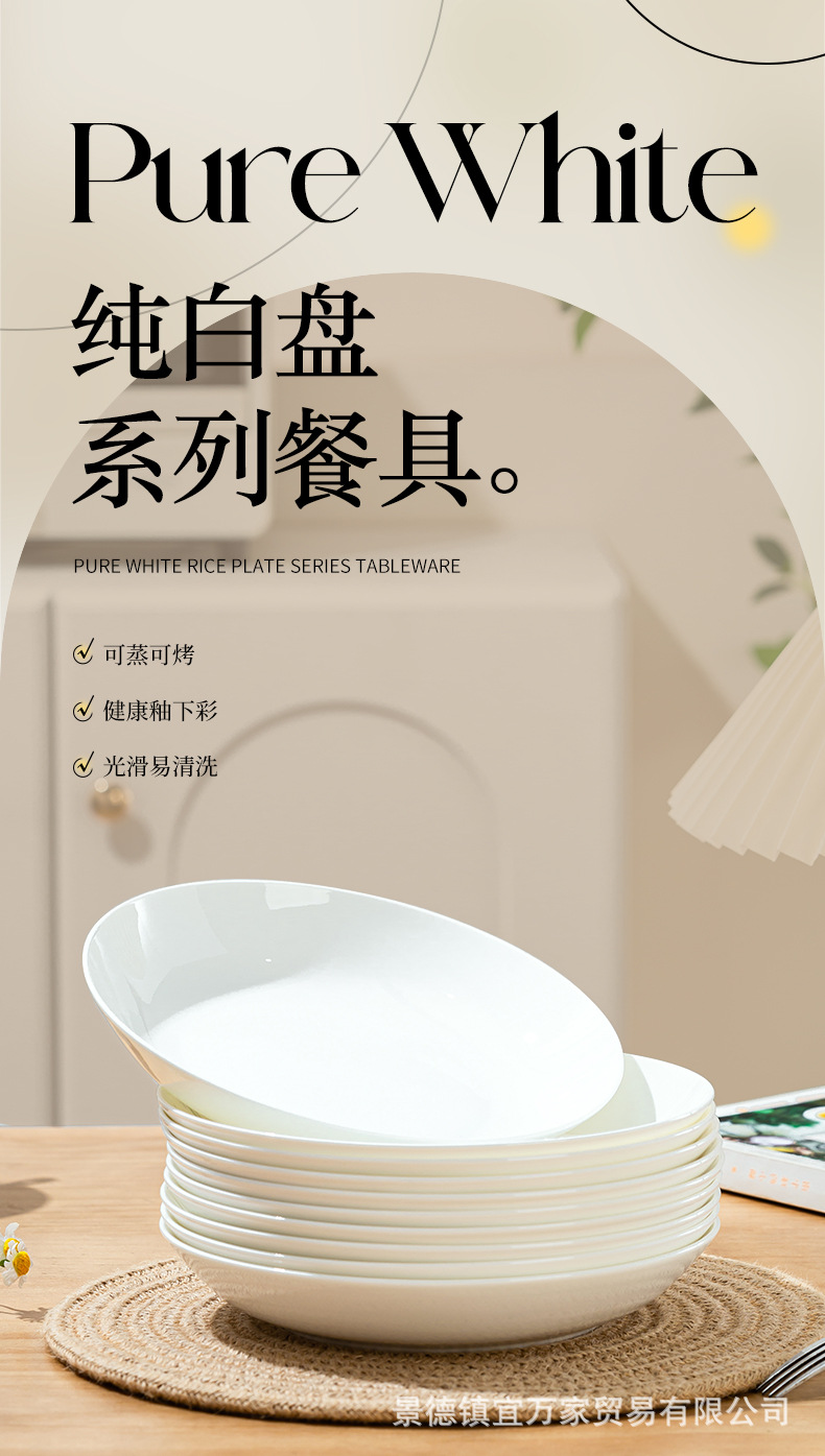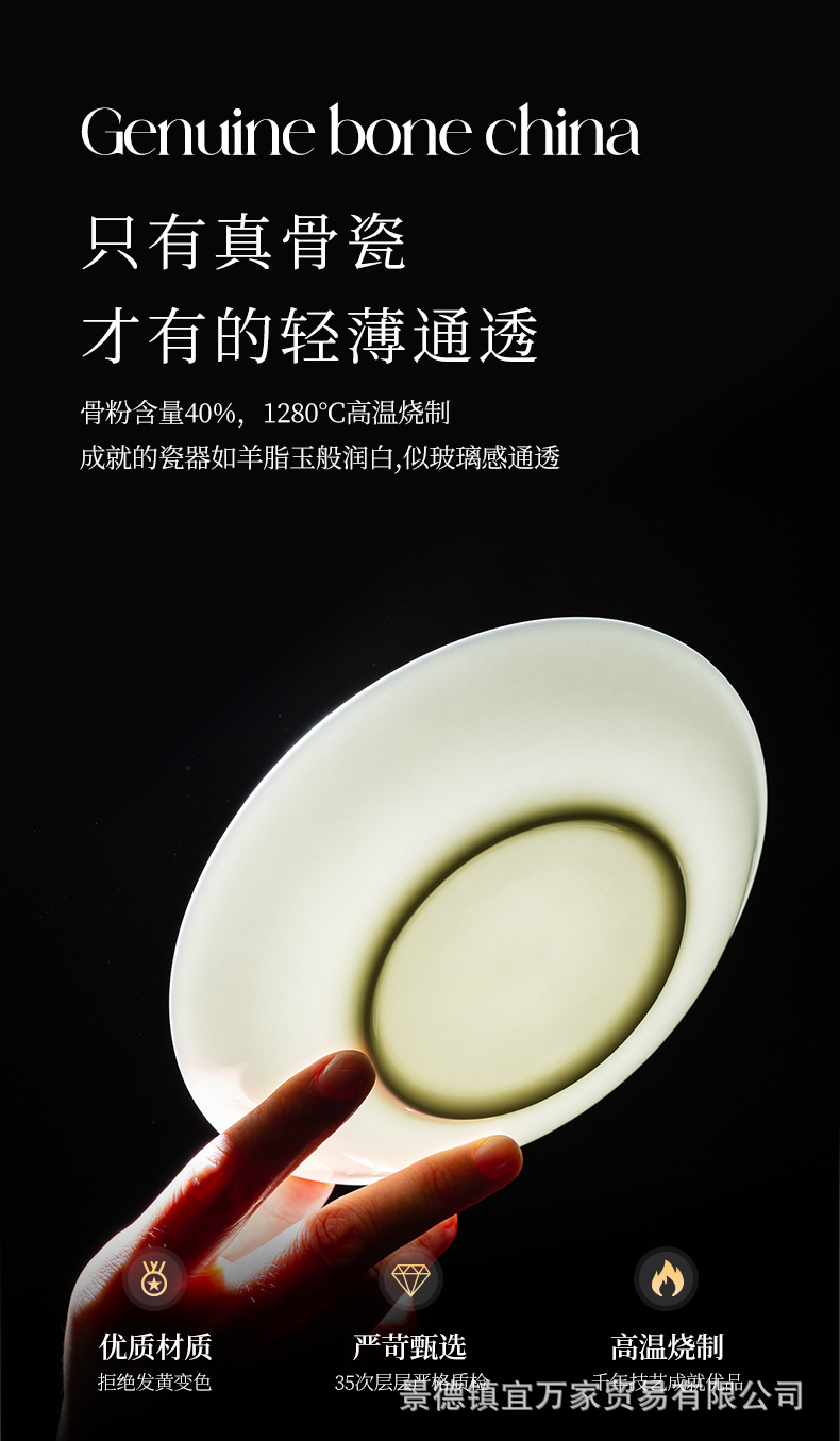 경덕진 순백색 본차이나 접시, 가정용 원형 달빛 접시, 독창적인 양식 접시, 본차이나 접시, 호텔 도자기 접시