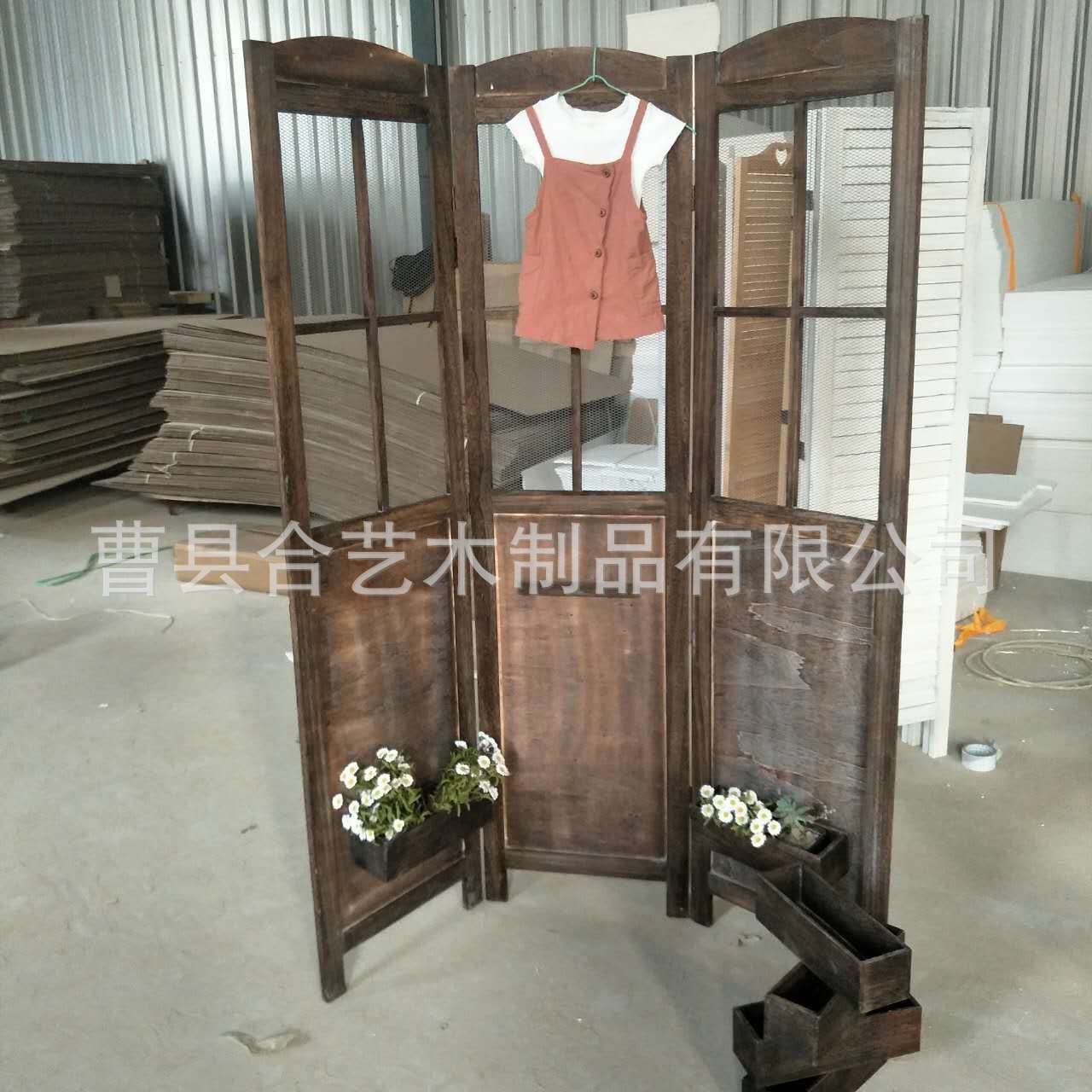 공장 공급 목가적 인 복고풍 나무 꽃 상자 화면 접이식 이동식 철 메쉬 파티션 화면스토어 가기