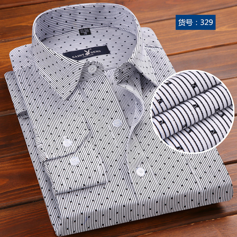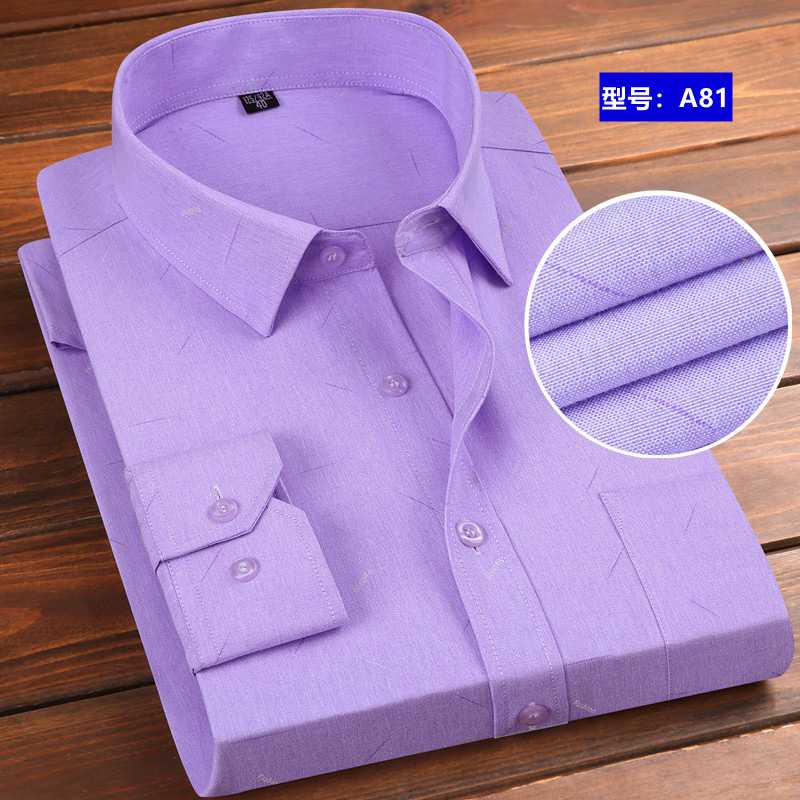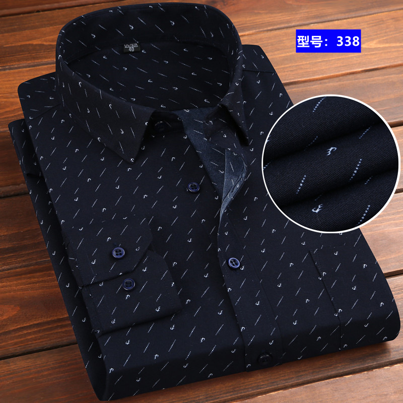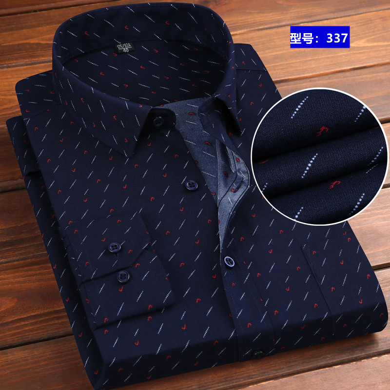 2024 새로운 중년 남성 긴팔 셔츠 비즈니스 캐주얼 꽃 무늬 스트라이프 솔리드 컬러 셔츠 비철 한국 스타일 슬림 피트