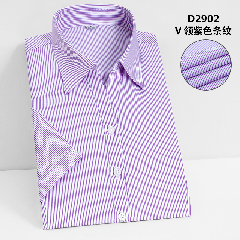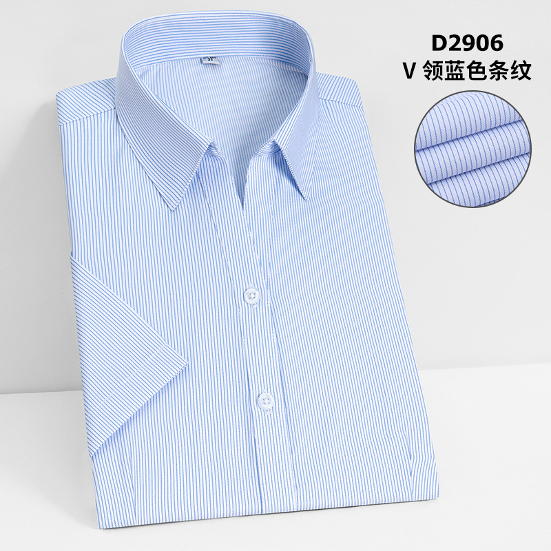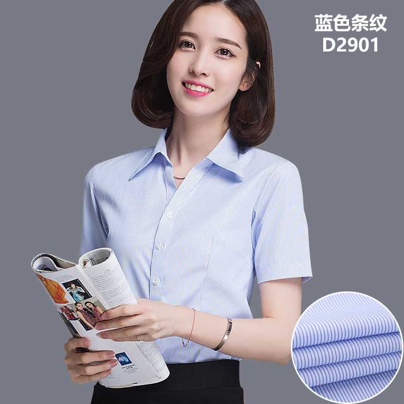 여름 여성용 반팔 비즈니스 셔츠 화이트 하의 블루 스트라이프 슬림핏 비 다림질 비즈니스웨어 브이넥 슬림핏 작업복 셔츠스토어 가기