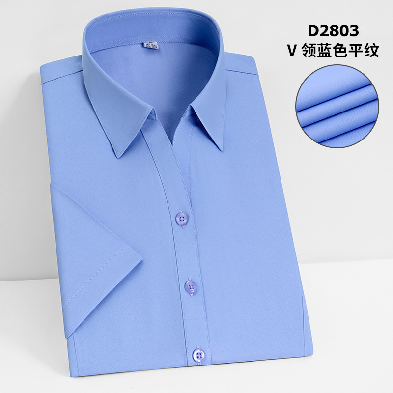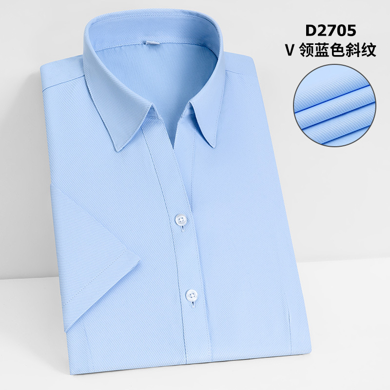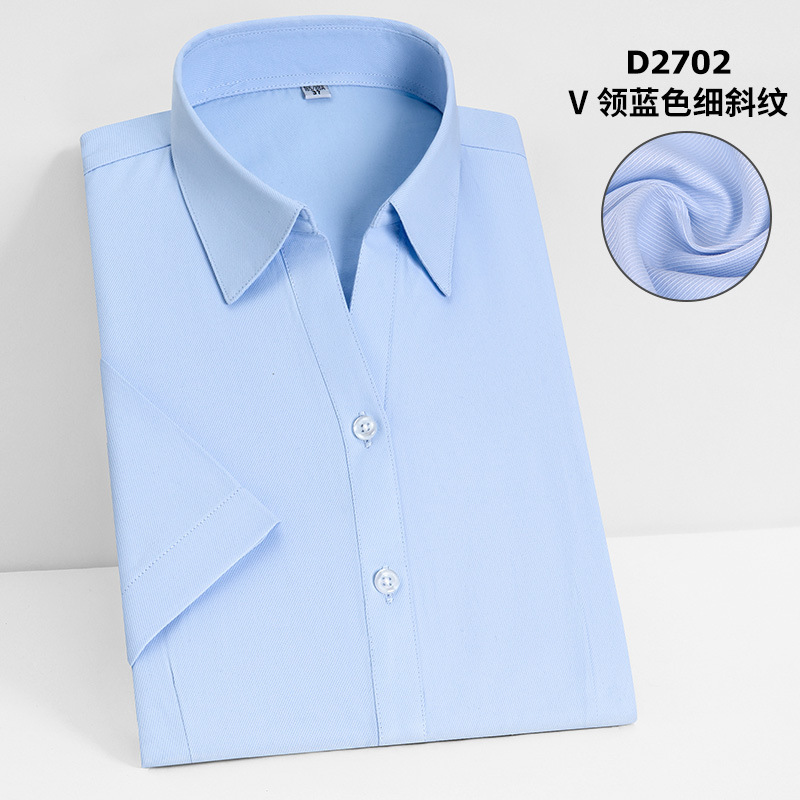 여름 여성용 반팔 비즈니스 셔츠 화이트 하의 블루 스트라이프 슬림핏 비 다림질 비즈니스웨어 브이넥 슬림핏 작업복 셔츠