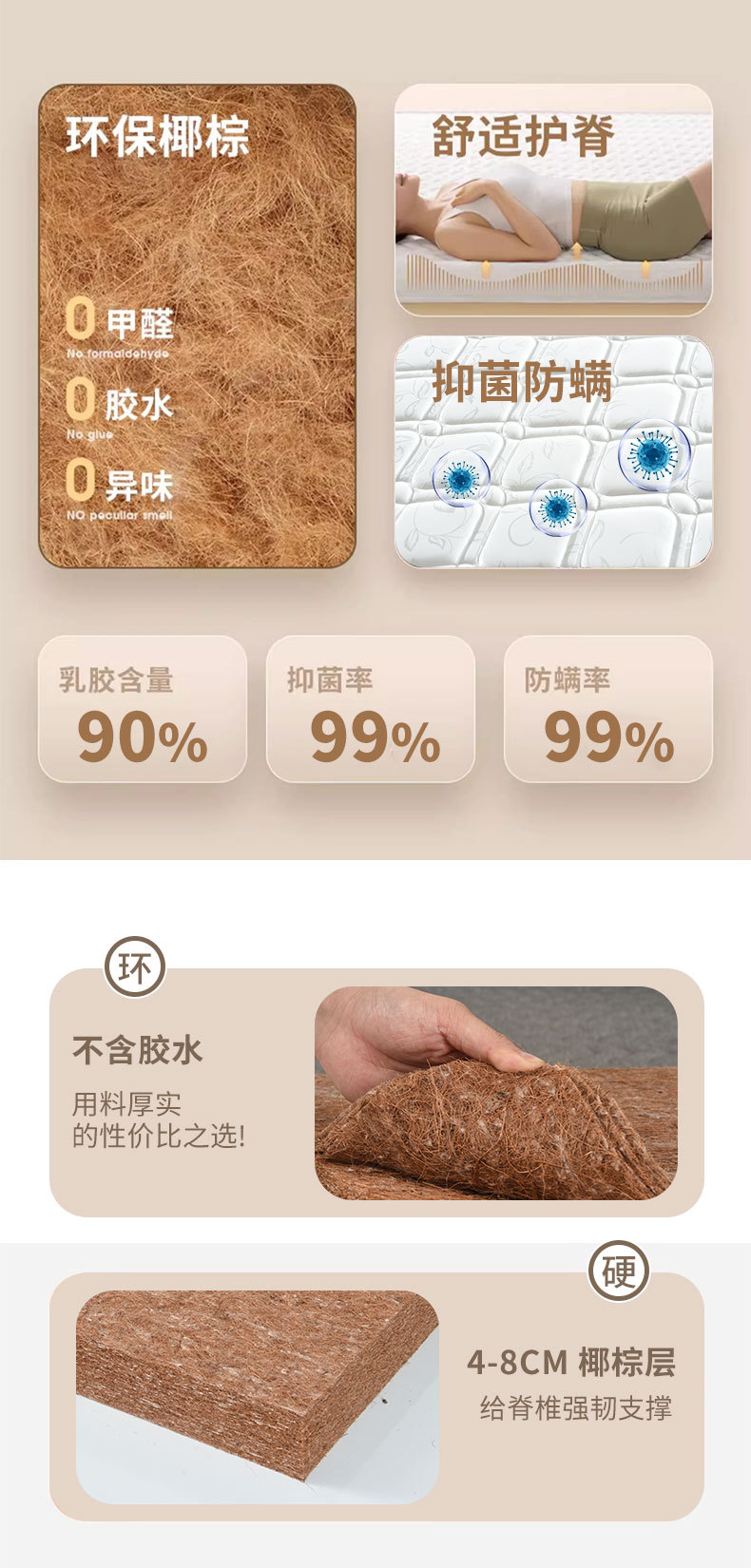 도매 임대 단일 다크 브라운 패드 능선 보호 하드 패드 1.8 미터 홈 시몬스 팜 접이식 코코넛 팜 매트리스스토어 가기
